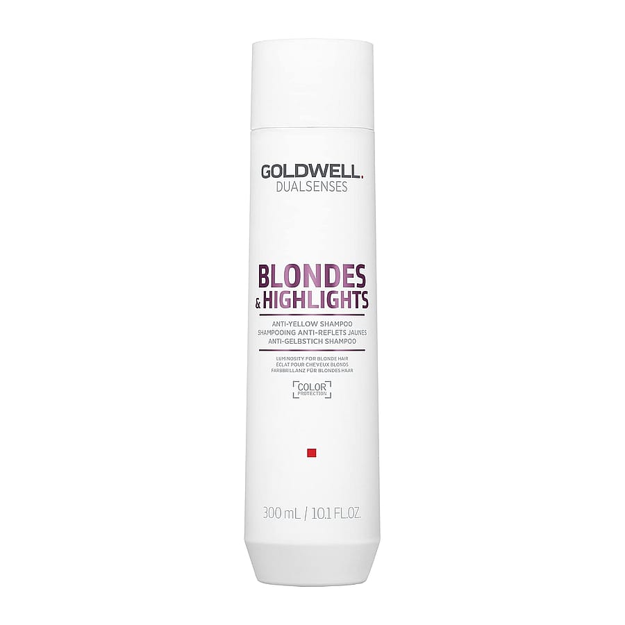 The Dualsenses Blondes and Highlights Shampoo brings out color luminosity and neutralizes unwanted yellow tones for blonde color reflections.
