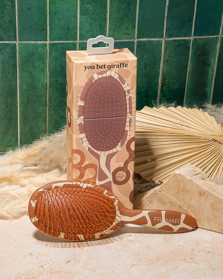 Gently glide through knots with the Frama Detangle Brush, designed for all hair types. Featuring flexible bristles that minimizes breakage and pain, this brush comes in multiple fun design and colors. Perfect for use on wet or dry hair.