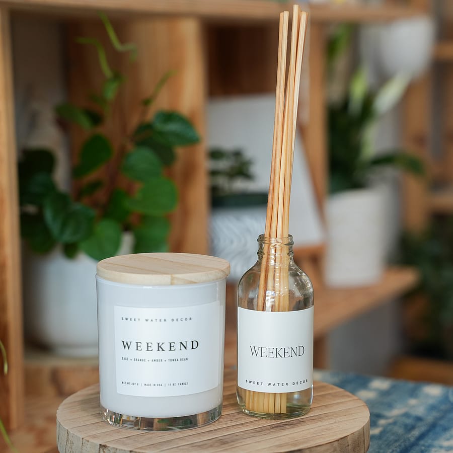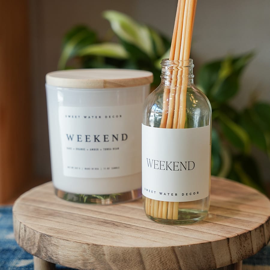 Our Weekend reed diffuser is the perfect blend of masculine + feminine. This complex fragrance begins with fresh and rich notes of oakmoss, orange, and grapefruit - and balances out to be grounded in woods, amber, and musk. A perfectly deep and complex, year-round scent.