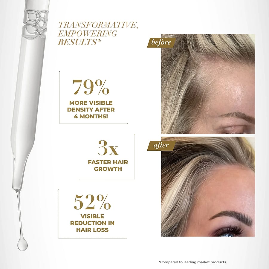 - Enhanced growth powered by Capixyl (Dextran, Acetyl Tetrapeptide-3, and Trifolium Pratense (Clover) Flower Extract) alongside advanced peptides.