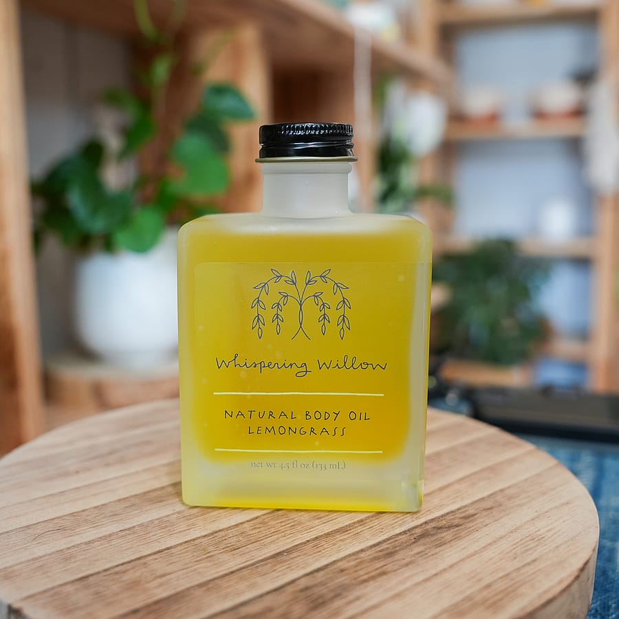 Whispering Willow Natural Body Oil Your skin works so hard - doesn’t it deserve some love? We use organic oils, butters, and beeswax in our natural body oil, salve, and lip balm to keep your skin happy and healthy. #selfcare