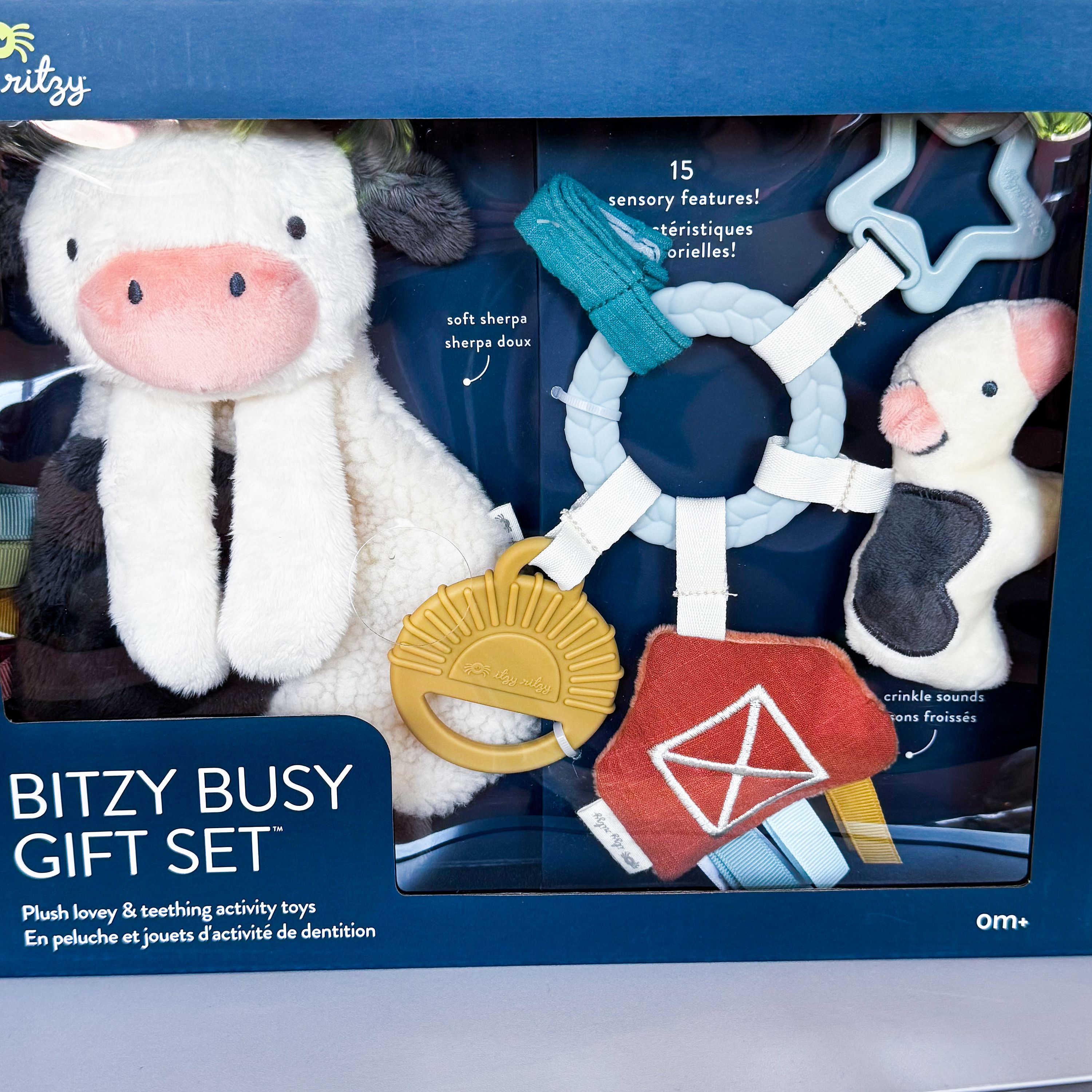 Keep little hands (and mouths!) busy with the Itzy Ritzy Bitzy Busy Gift Set – a sensory-rich collection of soft, soothing fun for babies 0 months and up. This adorable farm-themed set features a cuddly plush lovey and teething activity toys, all designed to entertain, comfort, and support baby’s development.