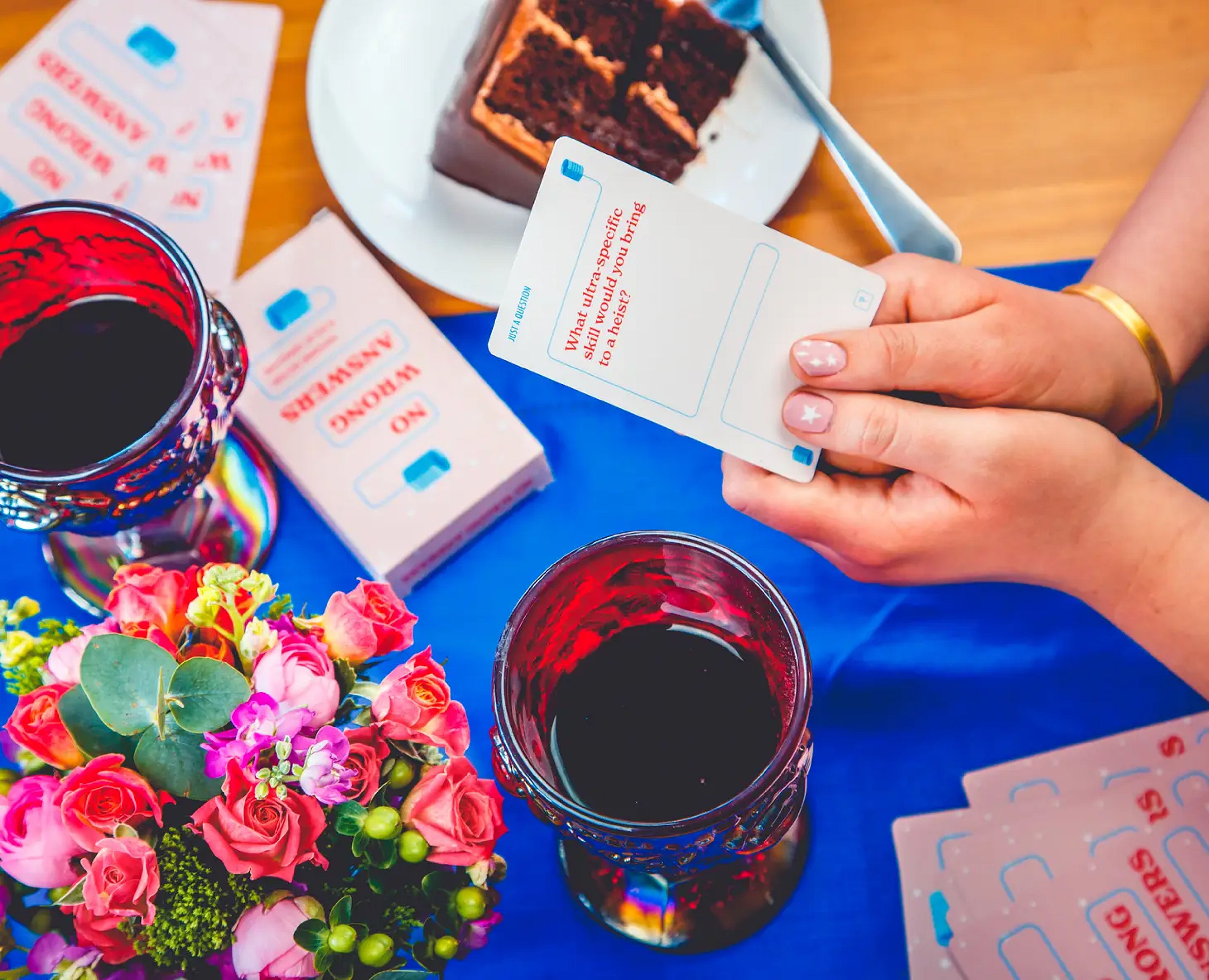 No Wrong Answers: Non-Burning Questions to Kick Off Conversations is a card game where friends and family can discuss life’s least pressing and most important questions.