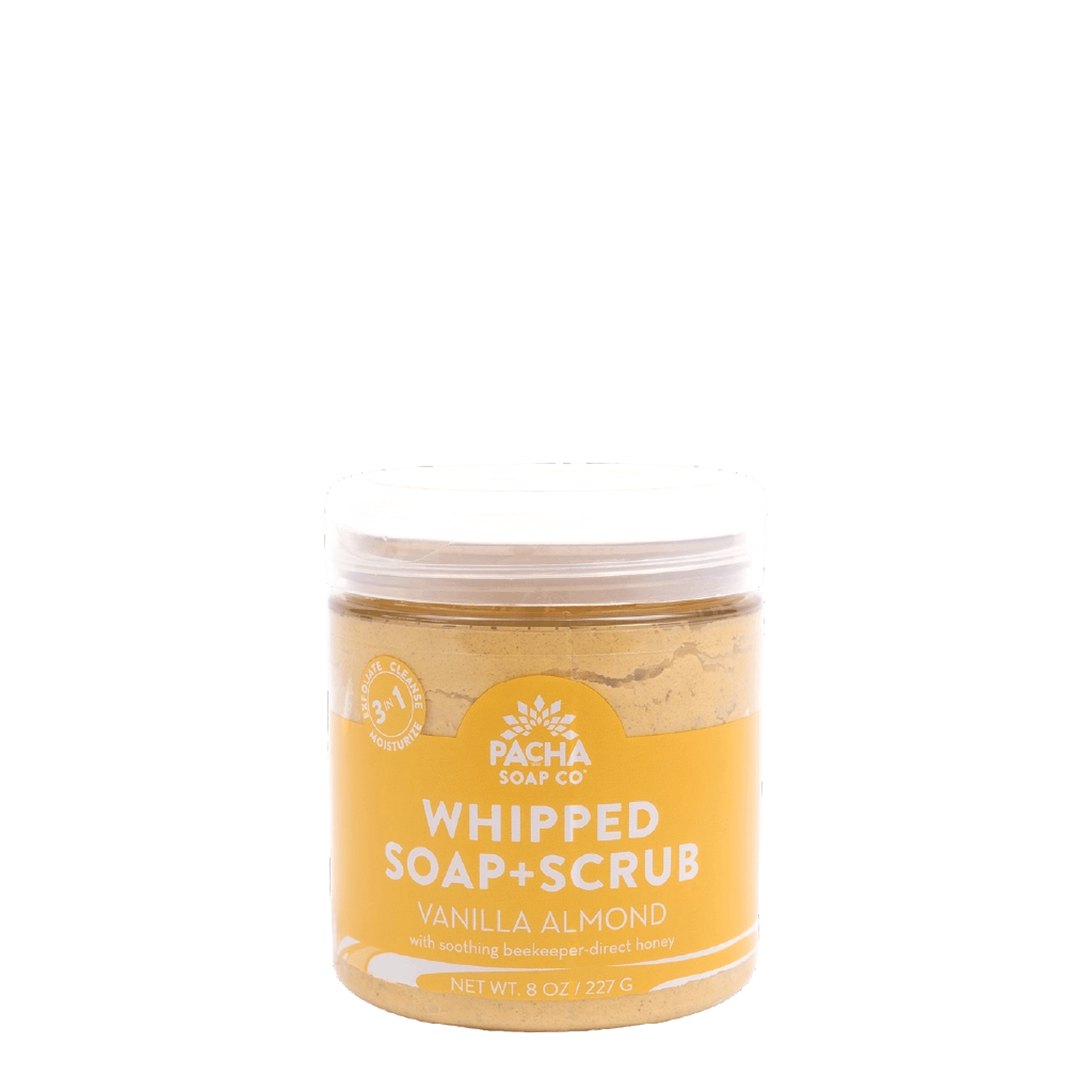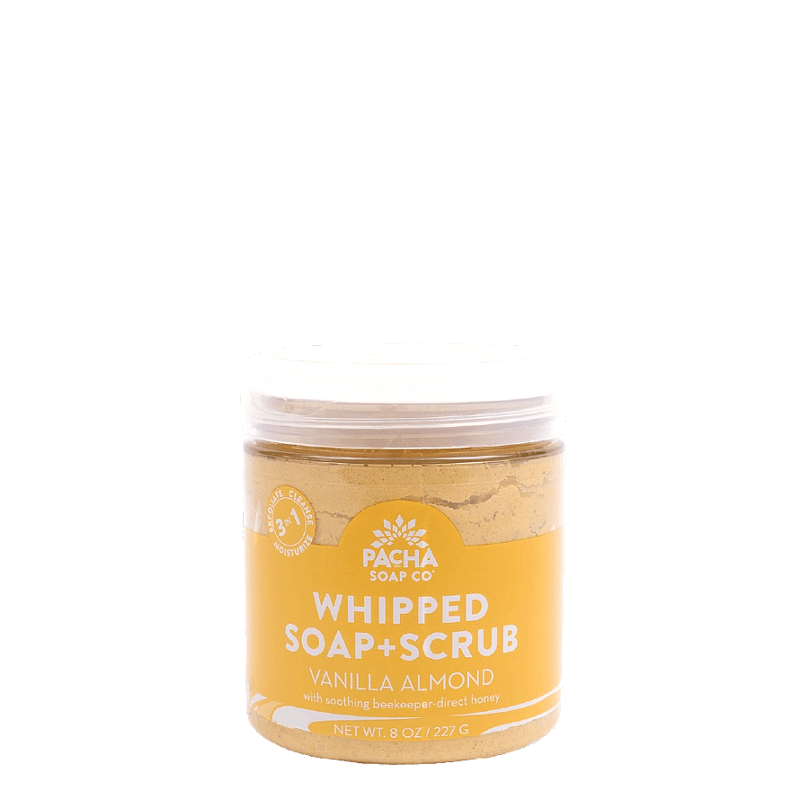 Our premium Whipped Soap + Scrub has a fresh new look! Its new and improved formula now features even more moisturizing plant-based oils. The new, more sustainable 100% PCR jar is designed to take up less space in your shower and features a flip-top lid for easier access. Crafted with exfoliating pumice, cleansing oils and skin-softening magnesium, this daily three-in-one body wash and scrub gently cleanses, exfoliates and moisturizes the skin at once. Nourish skin with rich beekeeper direct honey, sweet vanilla and decadent almond oil.