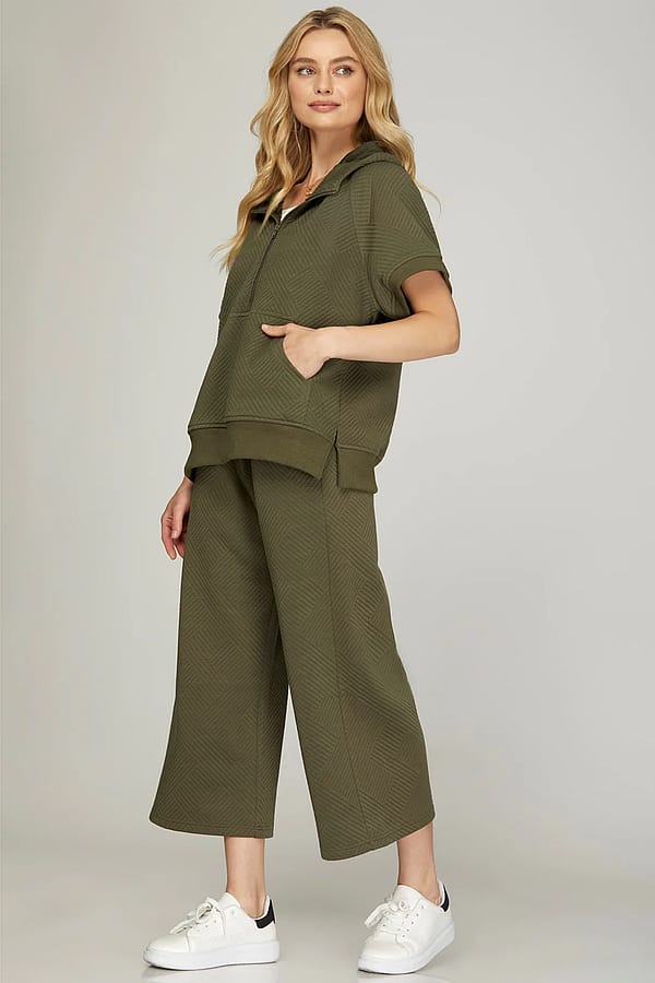 Quilted Texture Knit Capri Pants - Olive