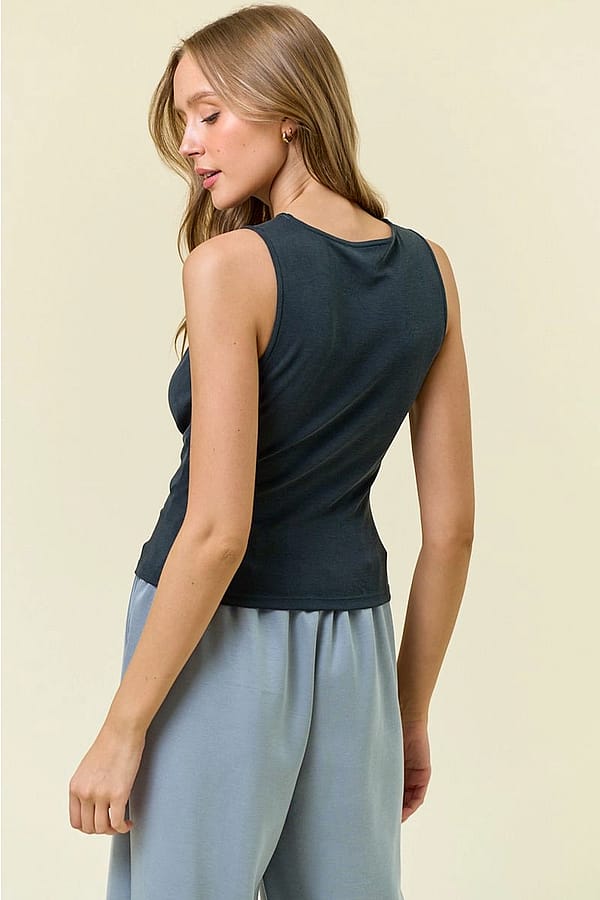 The Rush Hour Cinched Tank is your not-so-basic basic. With a body-hugging fit and adjustable ruching, it’s the perfect blend of sporty and chic. Wear it with shorts and sneakers on a hot day or layer it under a blazer when the temps drop. It moves with you — wherever you're headed next.