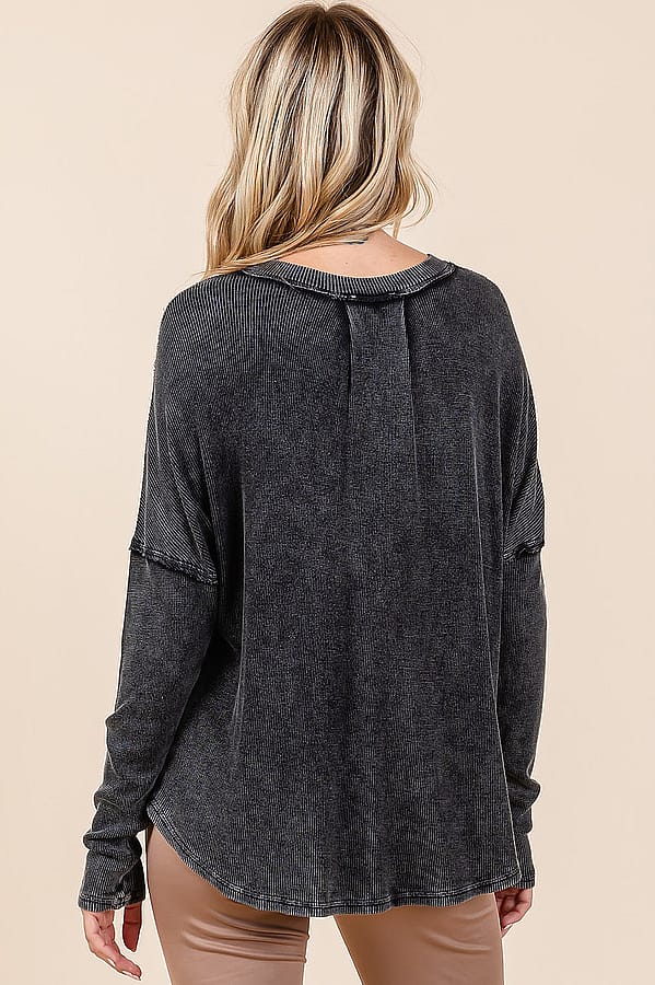 - Soft, garment-washed fabric with cozy ribbed texture