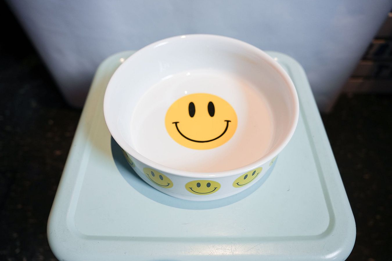 Bring sunshine to mealtime with this playful ceramic bowl featuring a cheerful smiley-face design. Crafted with functionality and flair, it's perfect for both food and water service.
