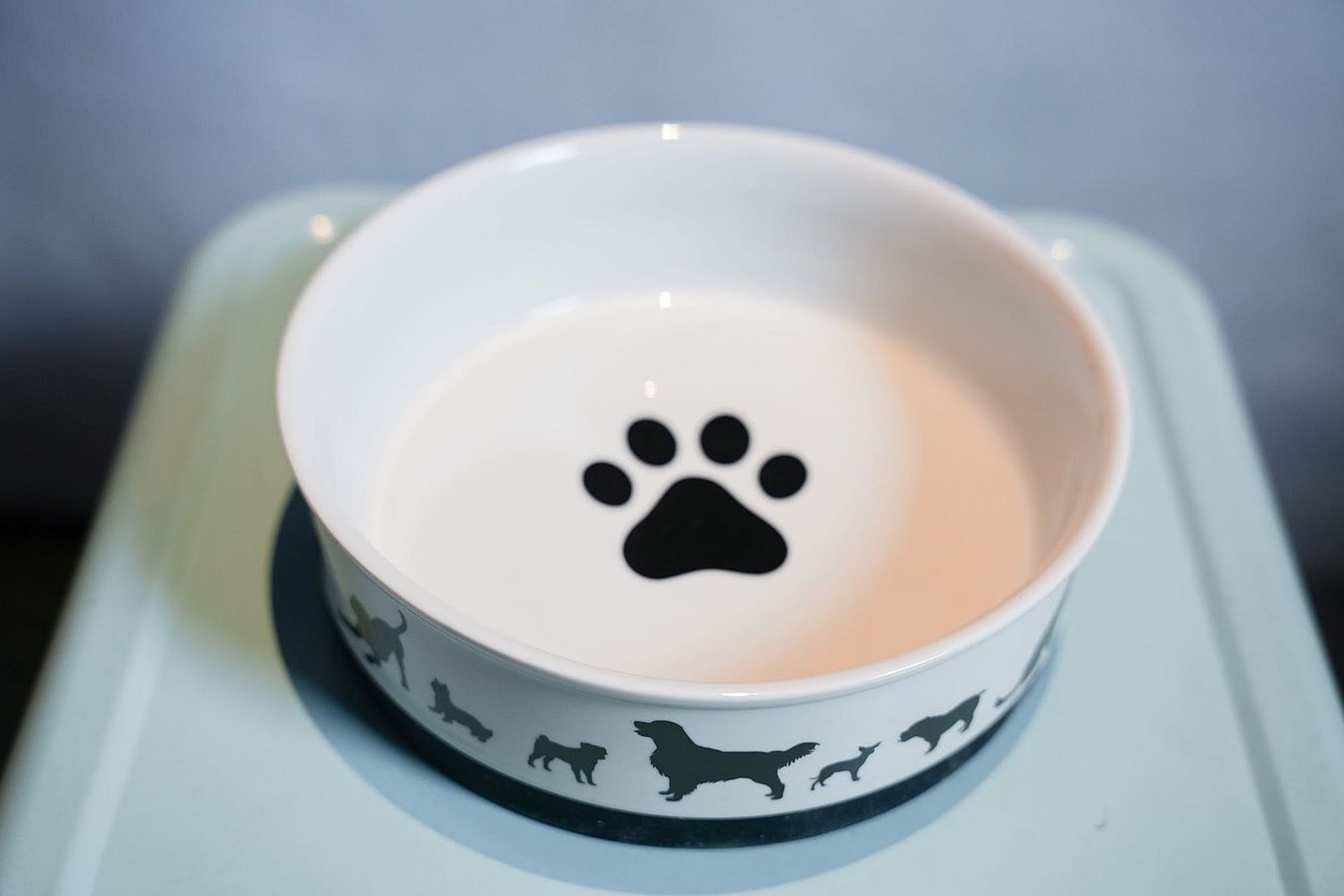 A charming pet bowl featuring playful black dog silhouettes encircling the outside against a pure white background with a black bottom rim. Crafted from durable, food-safe ceramic, it's BPA-free, features a non-skid silicone base to prevent sliding, and is both dishwasher- and microwave-safe for easy cleaning. Perfect for serving pet's food or water in style.