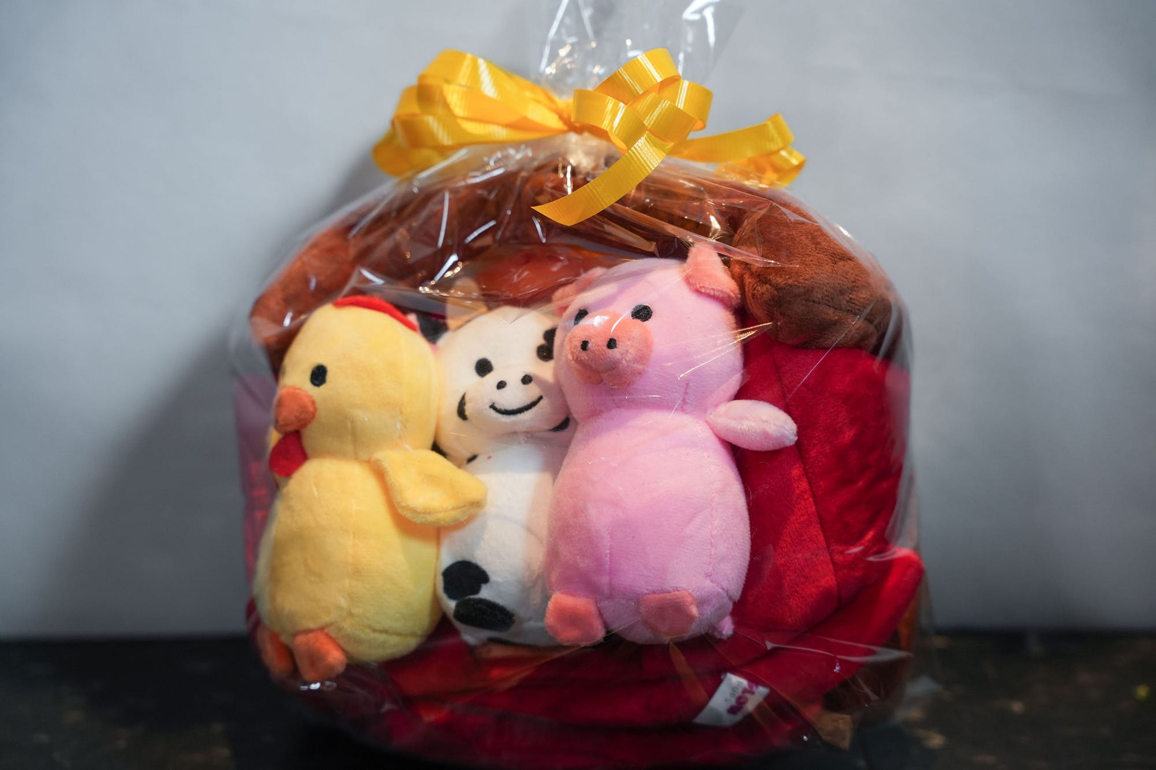Bring barnyard fun to playtime with the Barnyard Burrow Toy Gift Set! This interactive hide-and-seek toy features a plush barn stuffed with adorable squeaky barnyard friends. Perfect for keeping pups engaged and entertained.