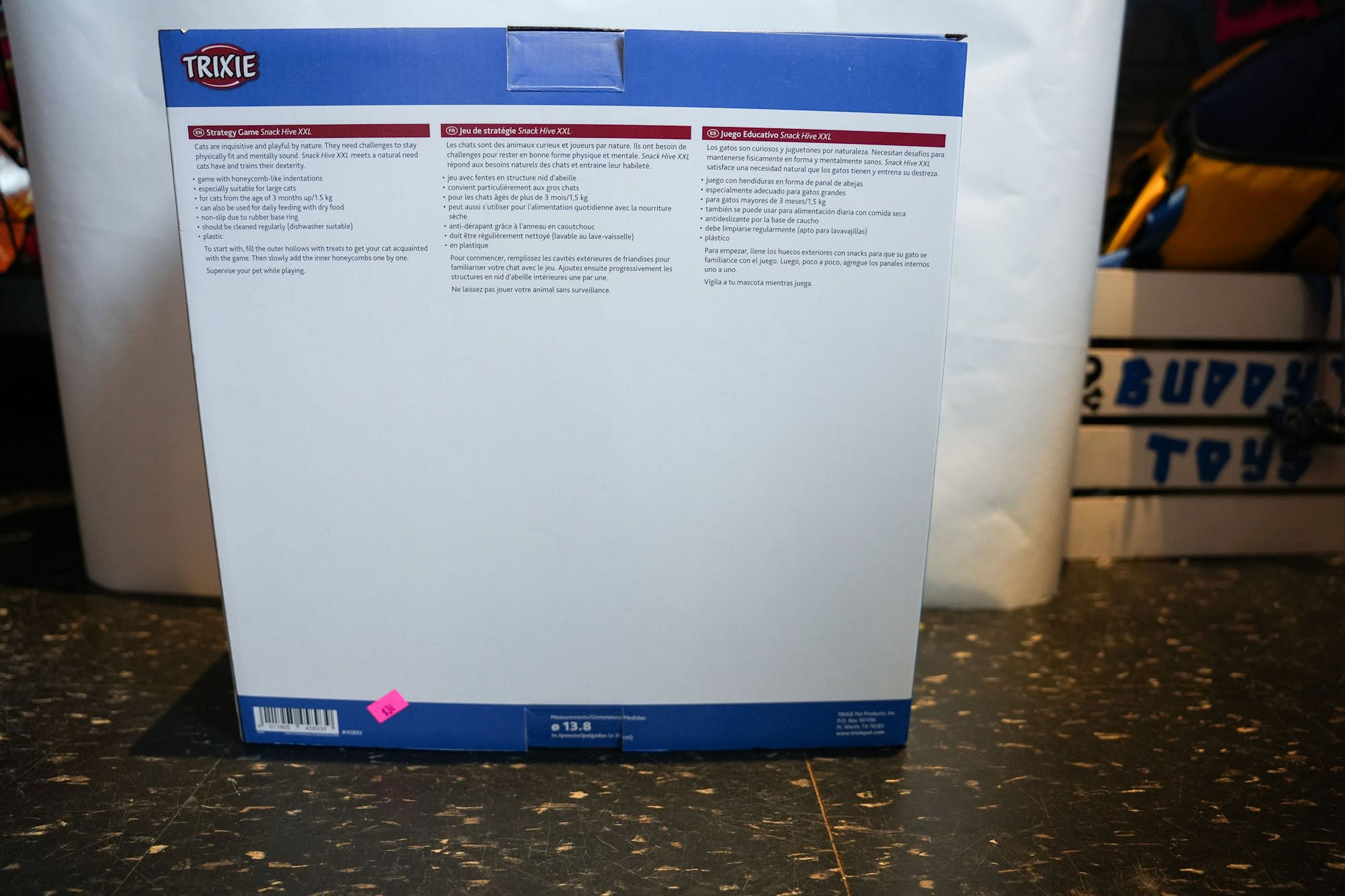 Turn treat time into playtime with the Trixie Cat Activity Snack Hive! This interactive feeding fame Features honeycomb-style design with multiple compartments to hide snacks, encouraging your cat to paw, sniff, and strategize. Perfect for slowing won fast eaters and providing mental stimulation, this puzzle toy keeps curious kitties entertained while rewarding them with tasty treats.