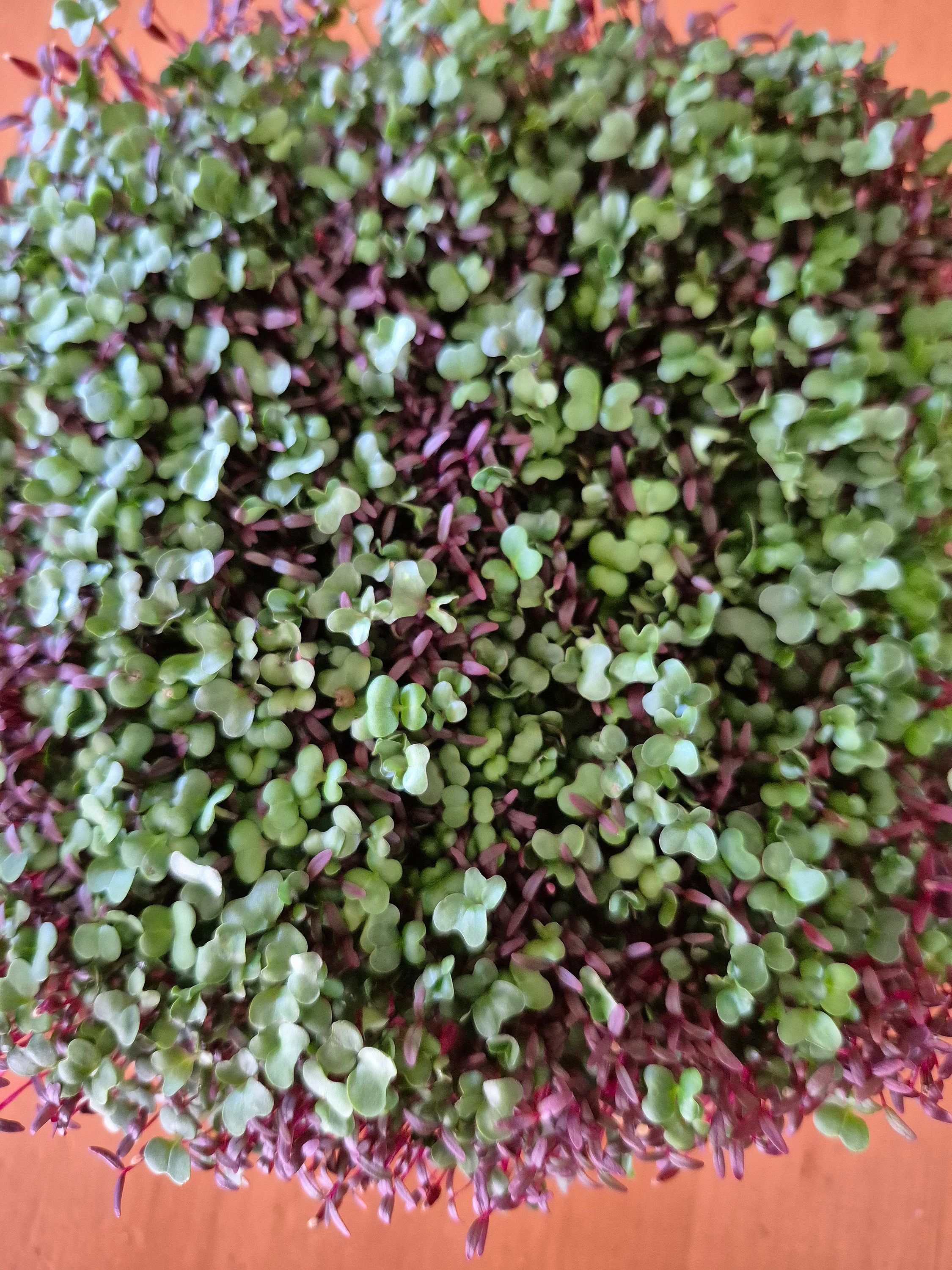 A healthy blend of Amaranth, Arugula, Broccoli, Kale, Pak Choi Microgreens.