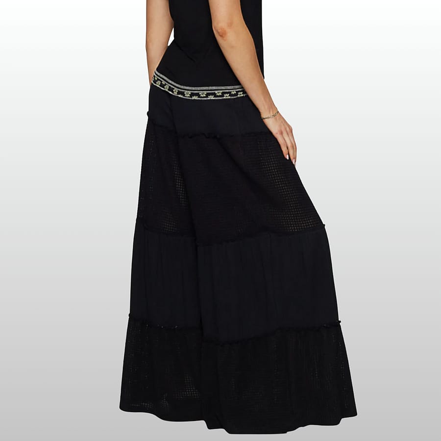 Camellia Denim Midi Skirt w/ Lace Up Detail