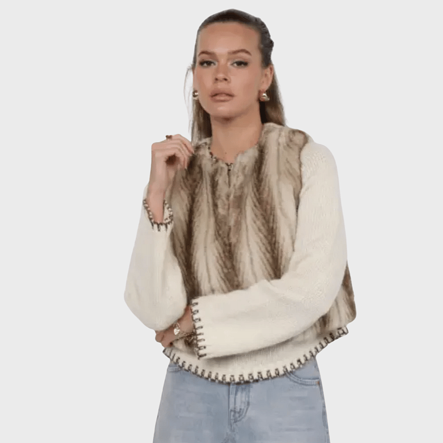 Sage The Label Ivory Taupe Demi Faux Fur Cropped Vest