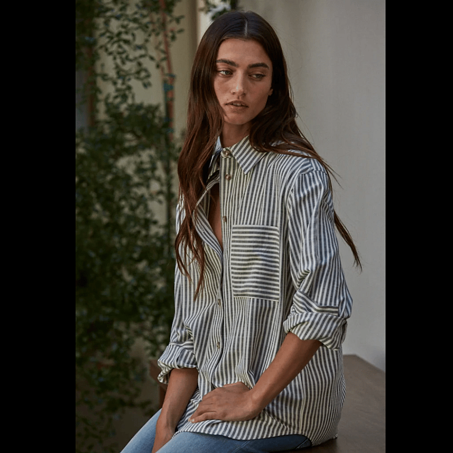 The Vincent Button Down is a wardrobe essential in a timeless striped pattern. Crafted from a soft 50% cotton, 50% polyester blend, it offers a comfortable relaxed fit. Featuring a classic collar, a convenient chest pocket, and long sleeves with rolled cuffs, is versatile enough for both casual and professional settings.