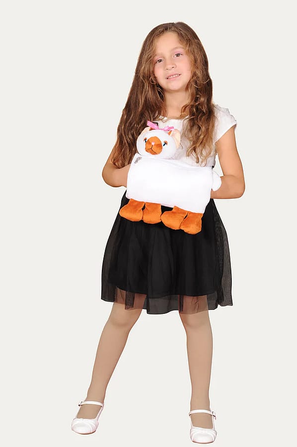 The "3-in-1 Cuddly Fun"™ is a novelty toy. This specialty plush item is a muff/handbag/plush animal that is made of polyester and comes with a shoulder strap and two zippered compartments for children's precious valuables. Patent Pending.