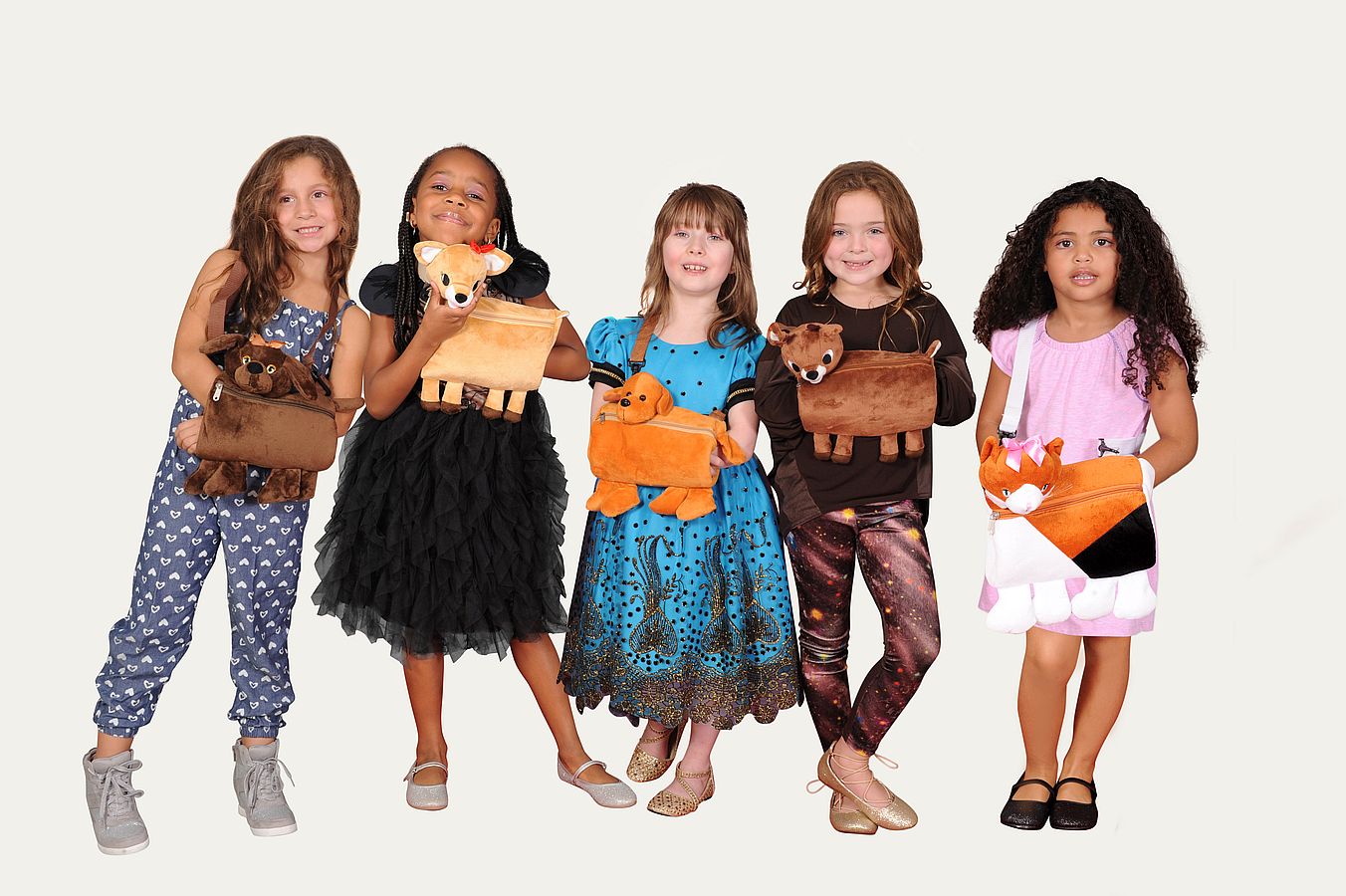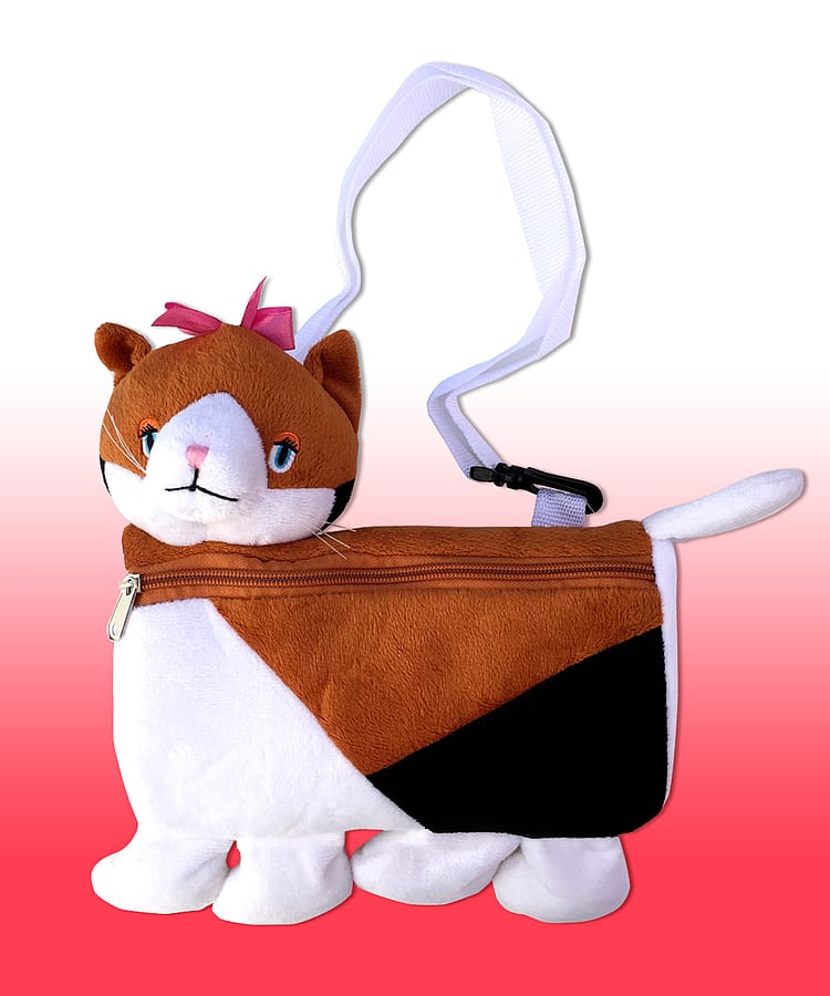 The "3-in-1 Cuddly Fun"™ is a novelty toy. This specialty plush item is a muff/handbag/plush animal that is made of polyester and comes with a shoulder strap and two zippered compartments for children's precious valuables. Patent Pending.