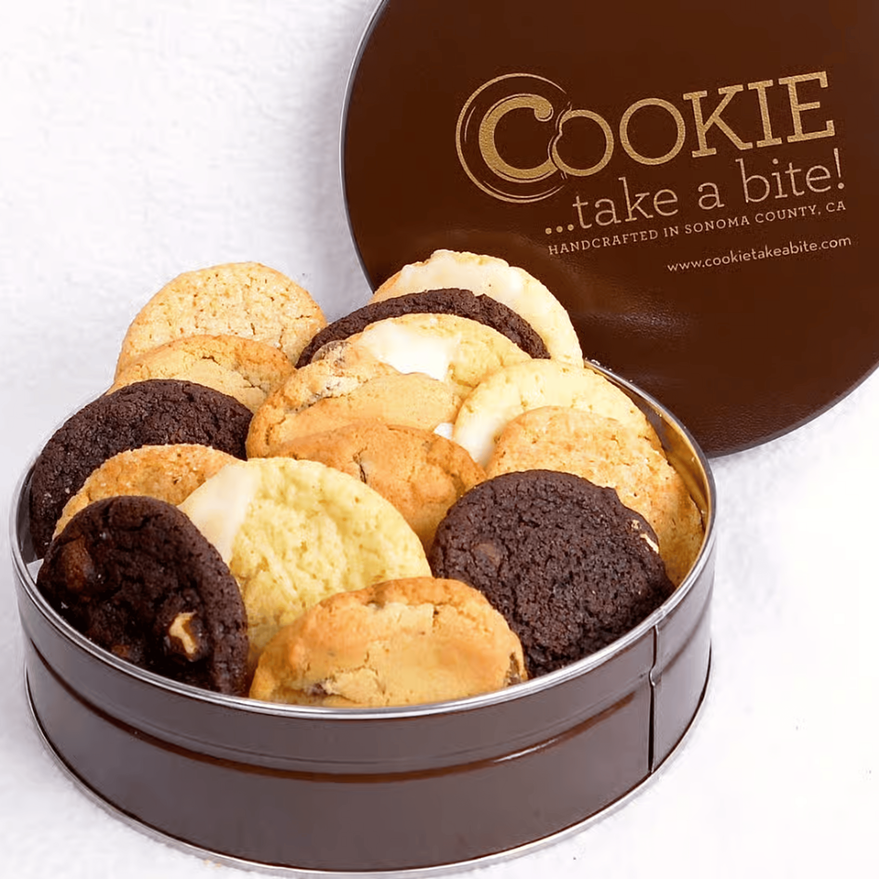 Approx. 25 cookies. 5 different pre-selected varieties. A great gift or hostess present! Flavors include our award-winning Lemon Moon, Classic Chocolate Chip, Triple Chocolate Threat, Snickerdoodle Sugar and Ginger Honey Snap. Flavors subject to change but we always include the best! All natural using local and organic ingredients. Taste the difference!