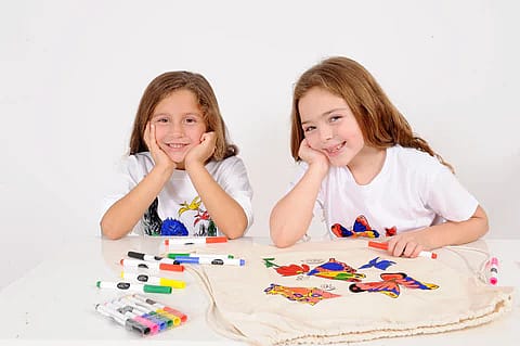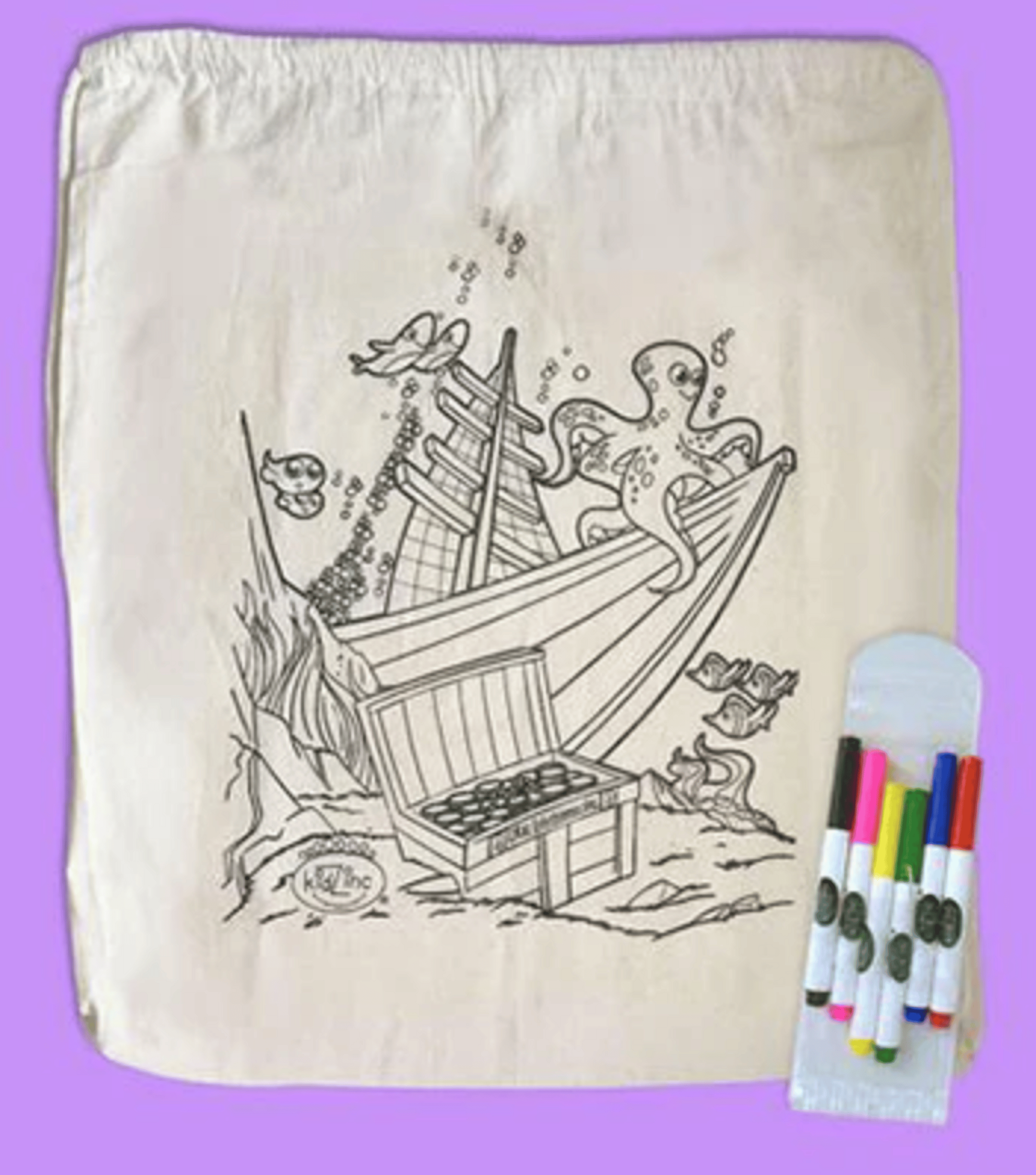 Color and create your very own t-shirts and backpacks! Wear your design proudly then wash it and create a new one!! The Washable Markers allow these adorable t-shirts and backpacks to be colored over and over again. A great activity with many designs that cater to children 4 + up and allows your child to wear his/her own customized shirt or backpack. Set of 6 washable markers included. Collect all designs! Makes a great arts & crafts project! Description: Natural Canvas Backpacks Size: 19.5 in. x 16.5 in Comes with a set of 6 washable markers