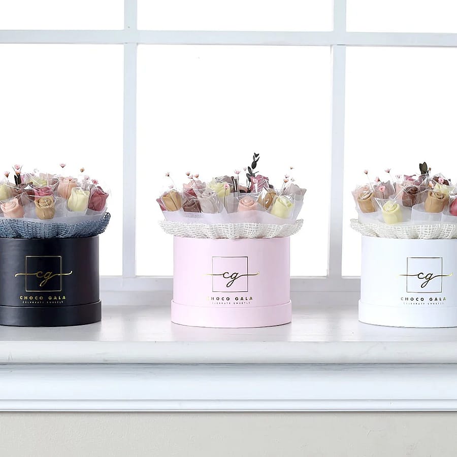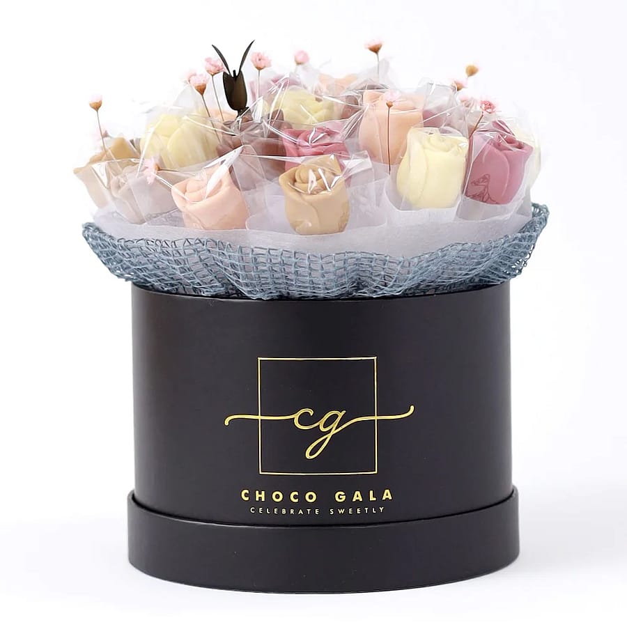 The Petite Eternity Box represents how we’ve re-envisioned the traditional gifting experience by combining the beauty of flowers with the indulgence of chocolate. This handcrafted rose chocolate bouquet is the pinnacle of luxury, offering a sophisticated and elegant chocolate gift perfect for any occasion. Always made-to-order, this arrangement is thoughtfully curated with vibrant chocolate rose flavors, made from 100% organic fruits, and beautifully arranged with dried flowers. Encased in a stunning, elegant box, it’s sure to make a lasting impression.