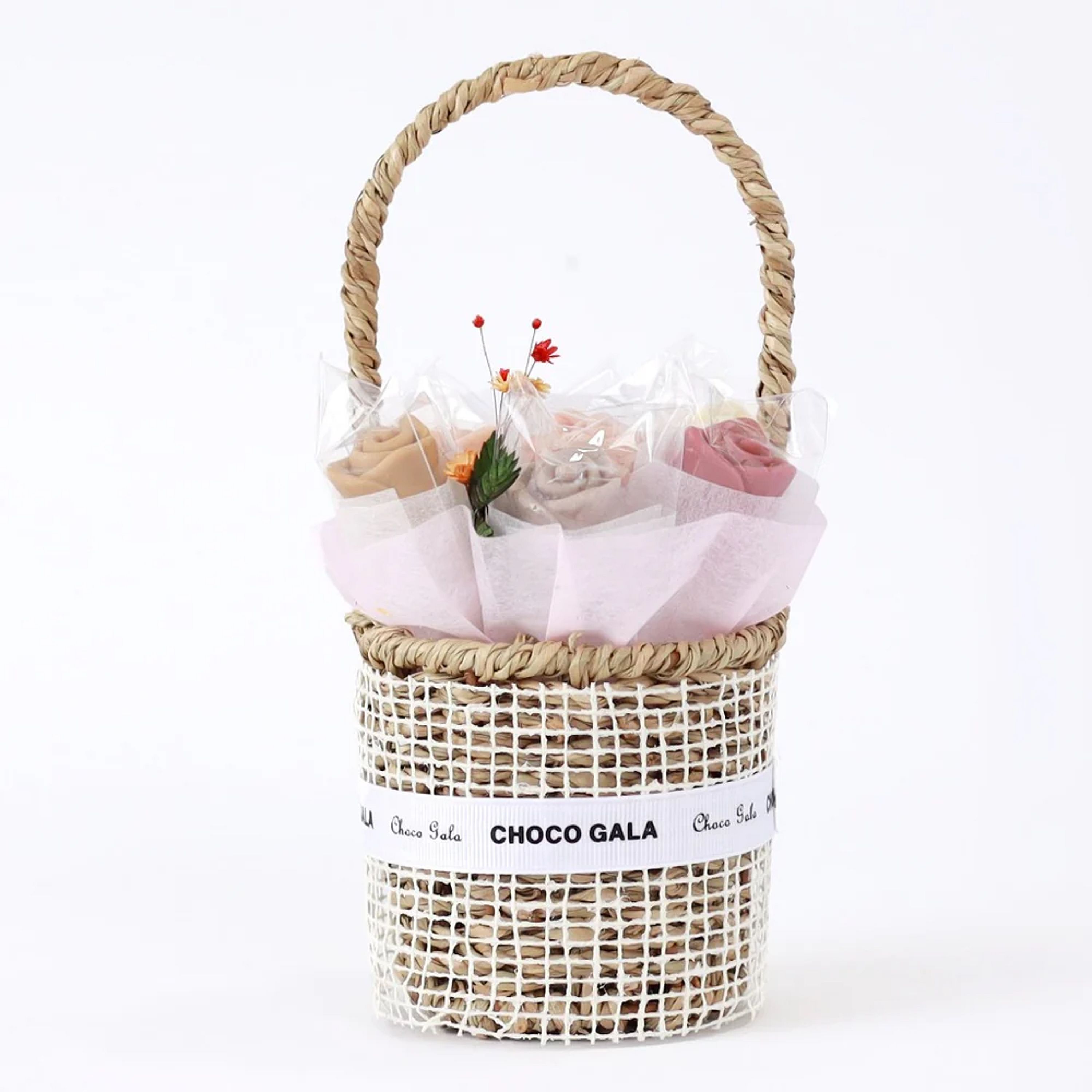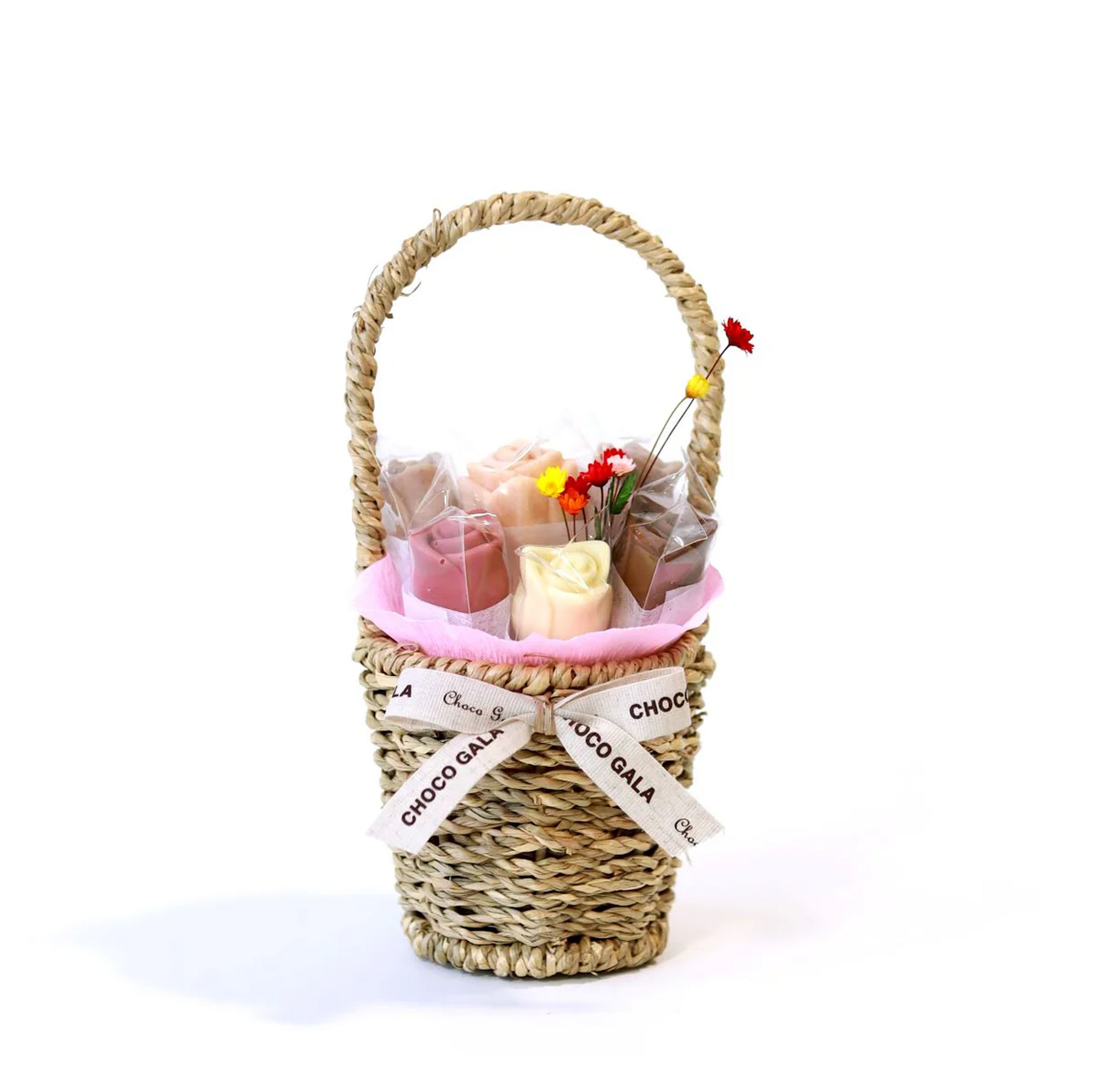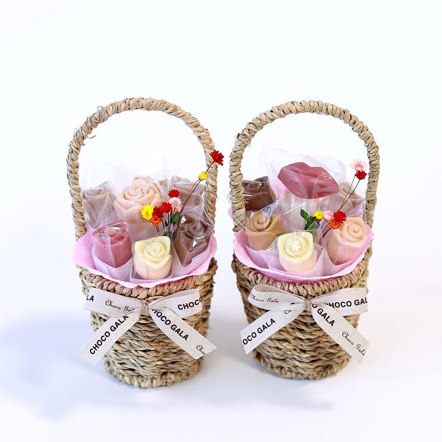 Bring joy to any occasion with our Petite Love in a Basket, a beautifully arranged chocolate gift basket that delivers just the right touch of luxury in a charming, petite size. This handcrafted Belgian chocolate bouquet features seven Belgian couverture chocolate roses made with 100% organic ingredients for an exquisite taste. Presented in a delicate wicker basket, the Petite Love in a Basket is perfect for Valentine’s Day, event favors, anniversaries, Mother’s Day, or as a thoughtful gift “just because.” Send this cheerful luxury chocolate gift to someone special and make their day a little sweeter.