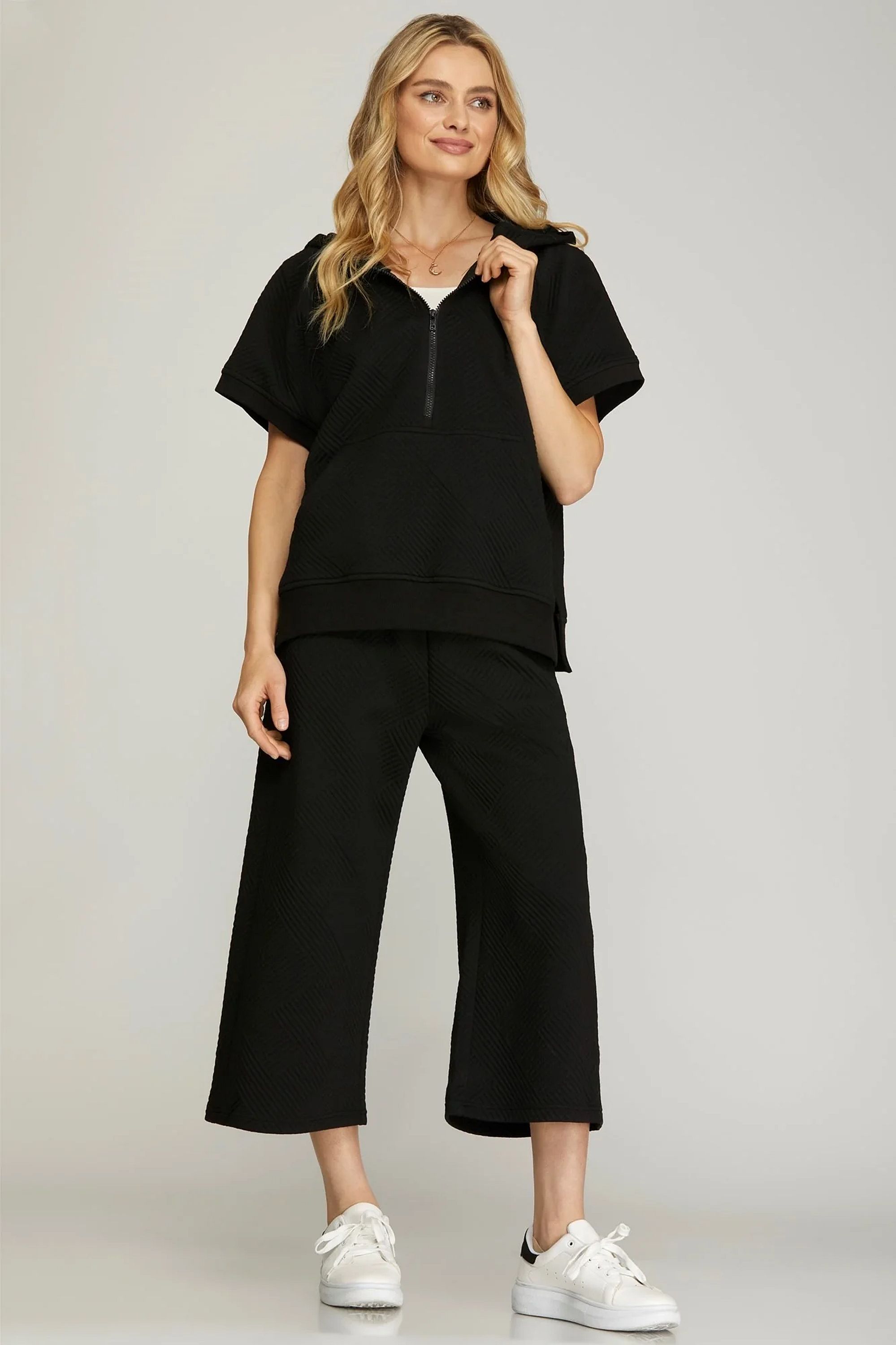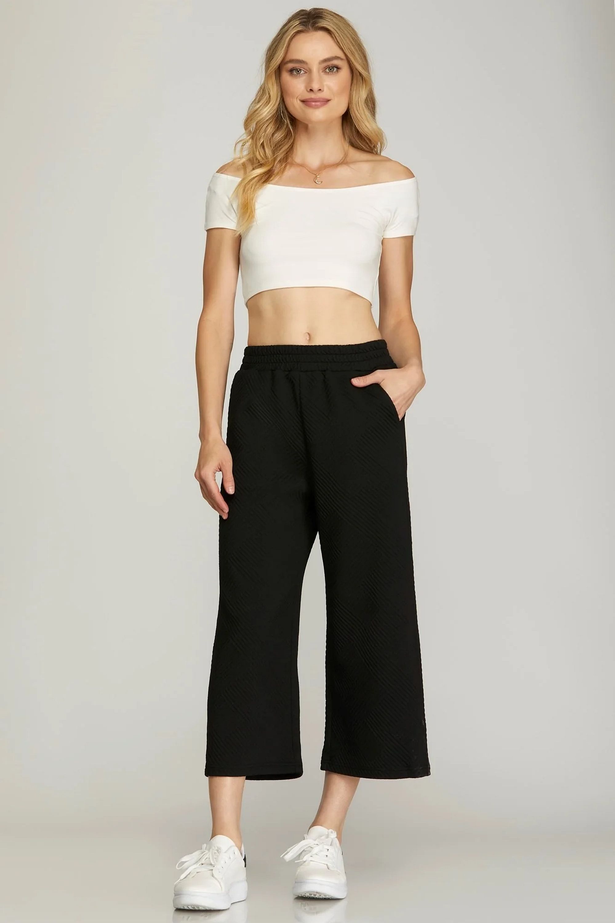 Quilted Texture Knit Capri Pants - Black