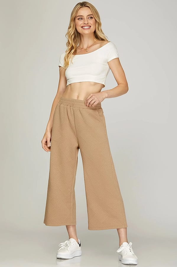 Quilted Texture Knit Capri Pants - Taupe - Large