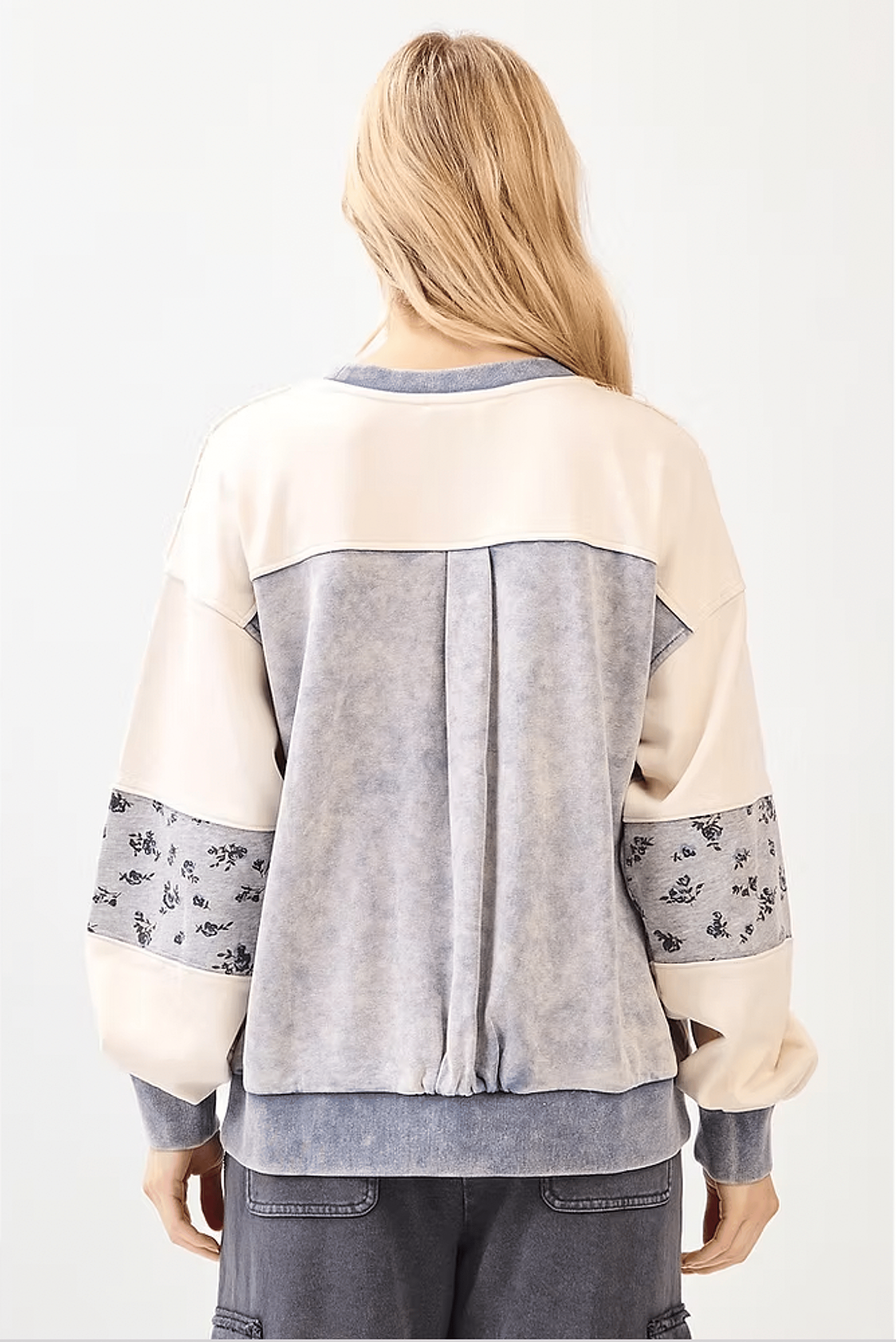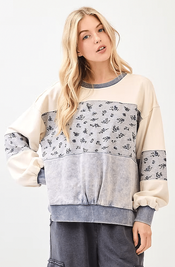 Acid Wash Floral Pullover Top