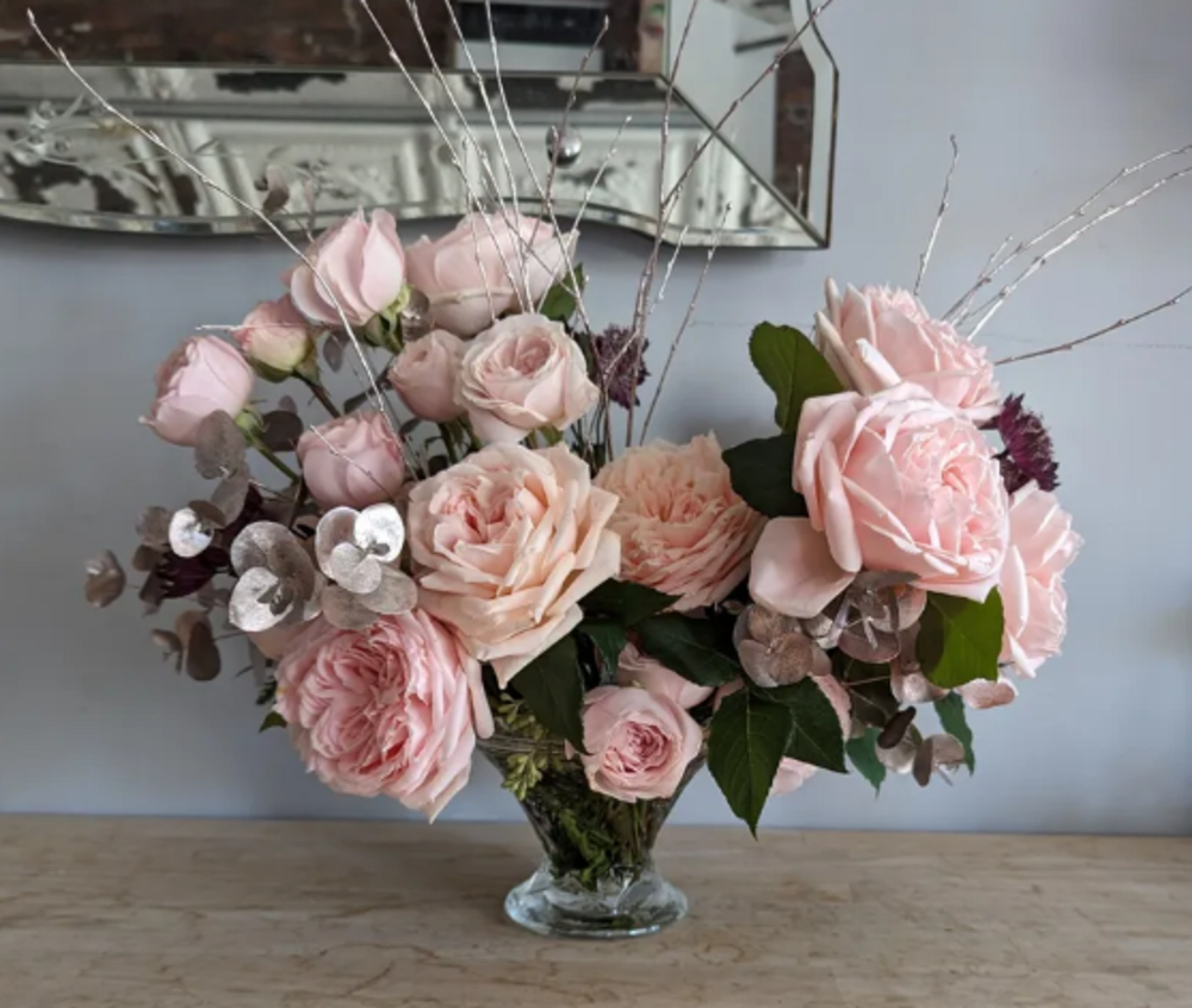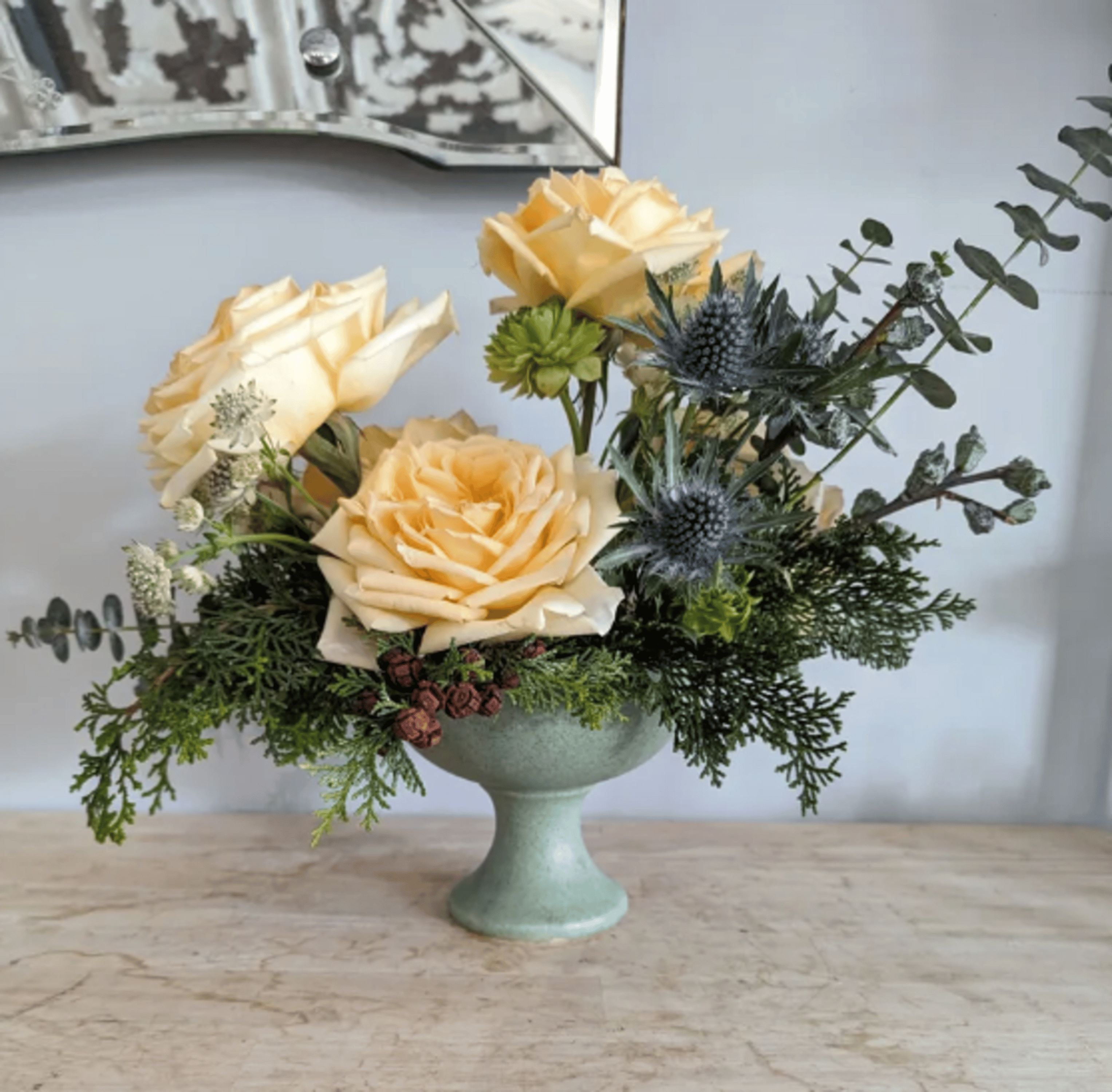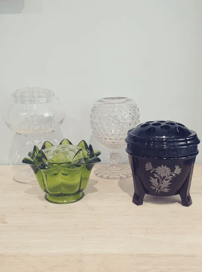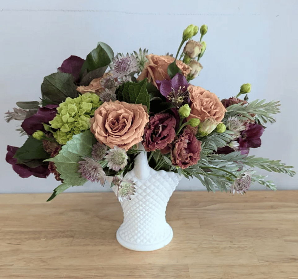 We have a wide selection of vintage glass and pottery available for purchase paired with our fresh or dried florals. Just leave it up to us and we'll create something truly one-of-kind. We have so many pieces, you really can't go wrong-just trust us.
