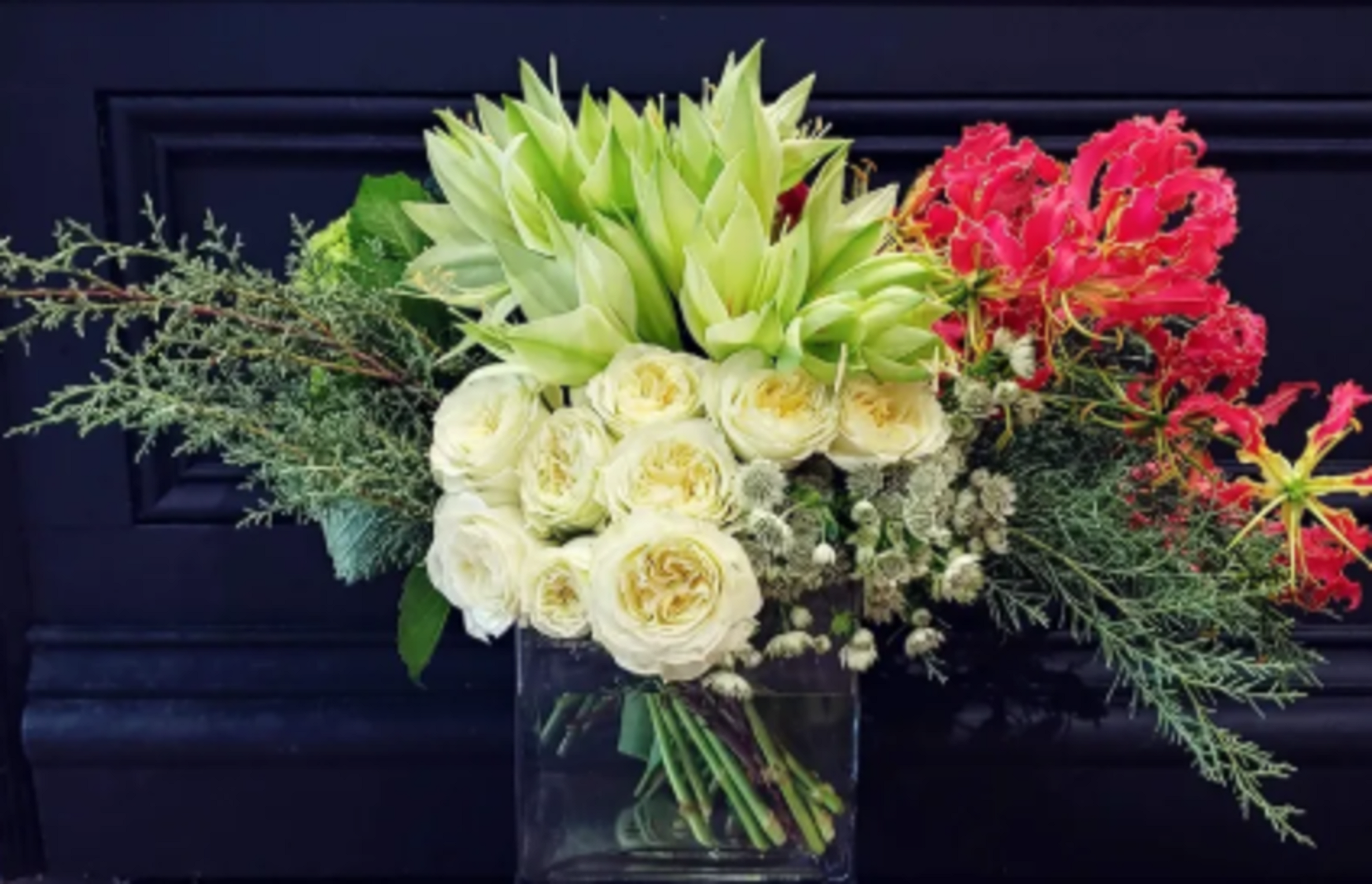Have a special friend who is really extra? Get them a gift with everything you'd ever want in a holiday flower arrangement. We've included - garden roses, amaryllis, holiday greens and Gloriosa lilies (when available) but of course we'll make substitutions when necessary.