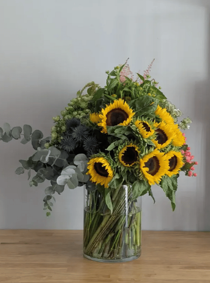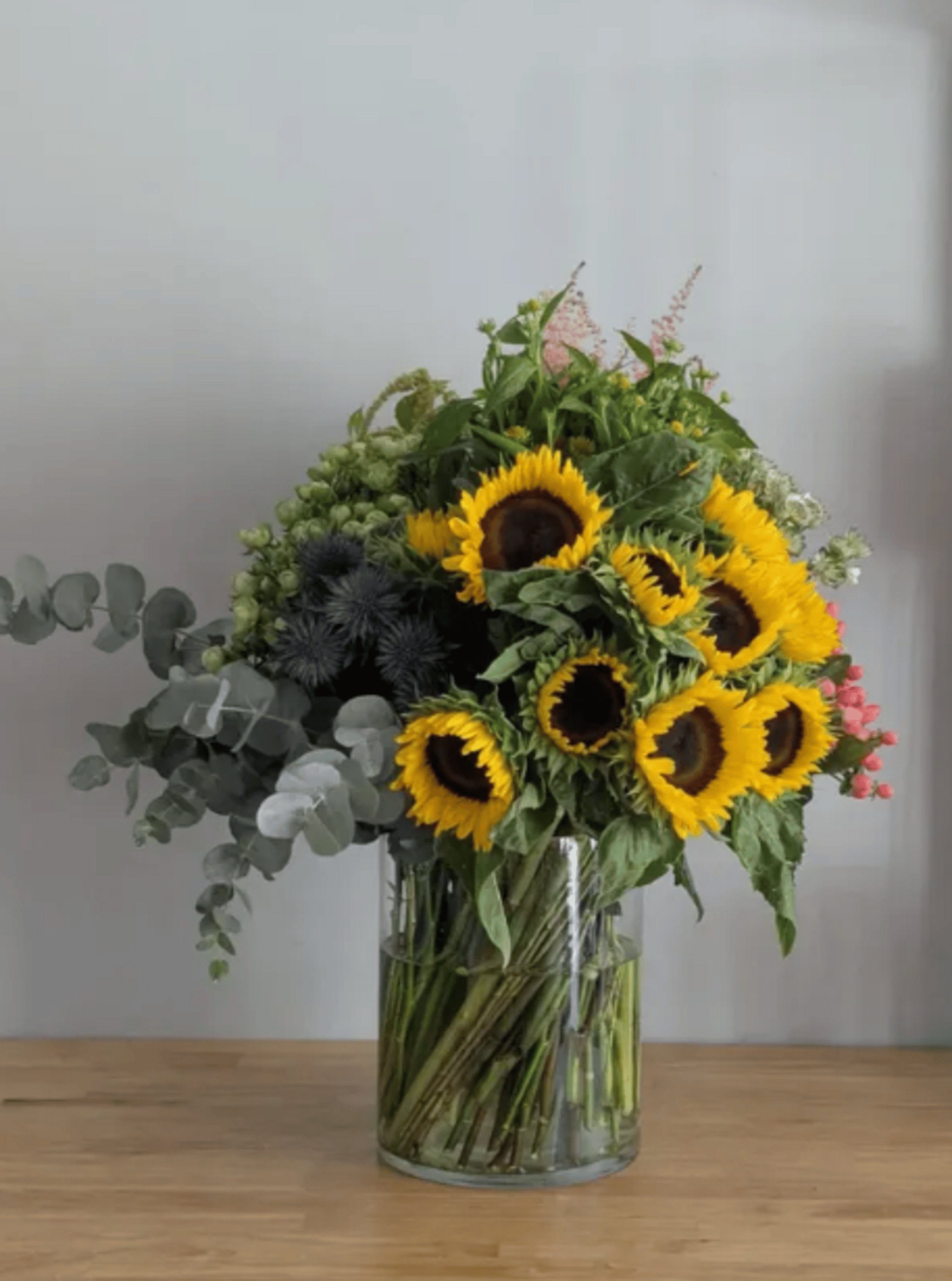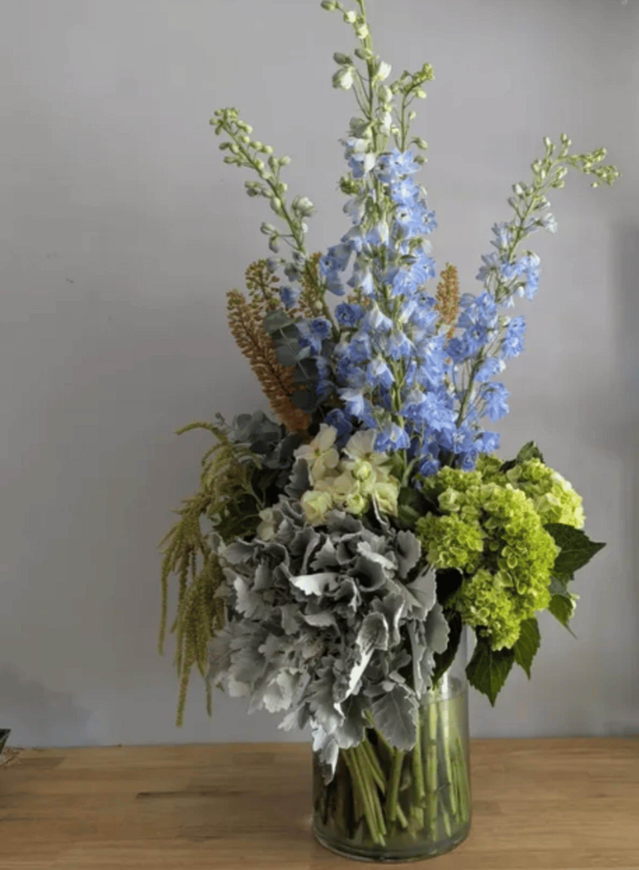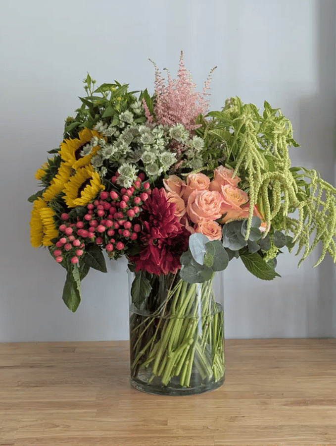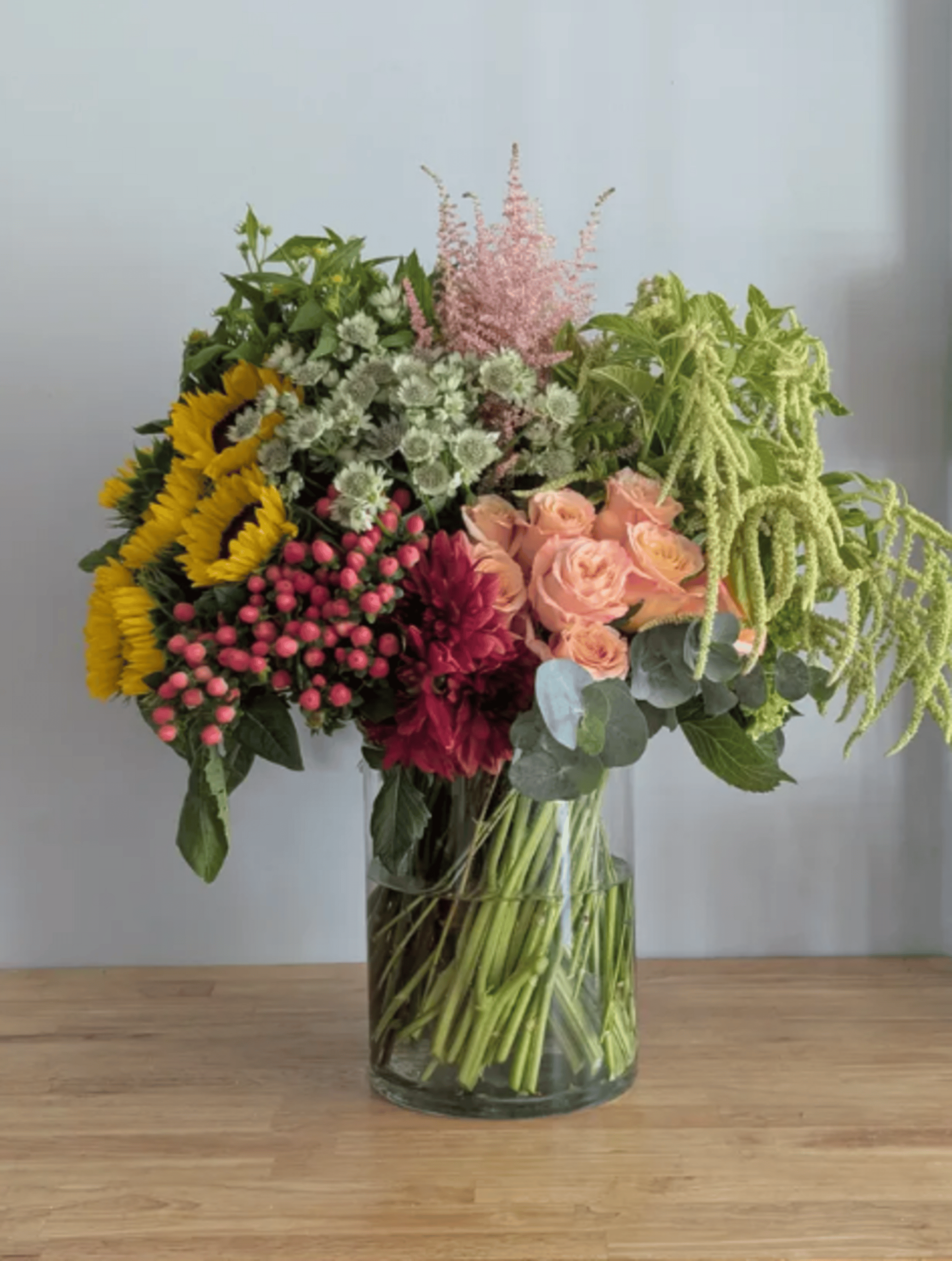 This is a really abundant arrangement filled with our freshest seasonal blooms. Artfully created in an 8-in wide by 12-in tall cylinder vase. Flower choices will vary based on seasonal availability, but don't worry, the recipient will definitely be impressed!