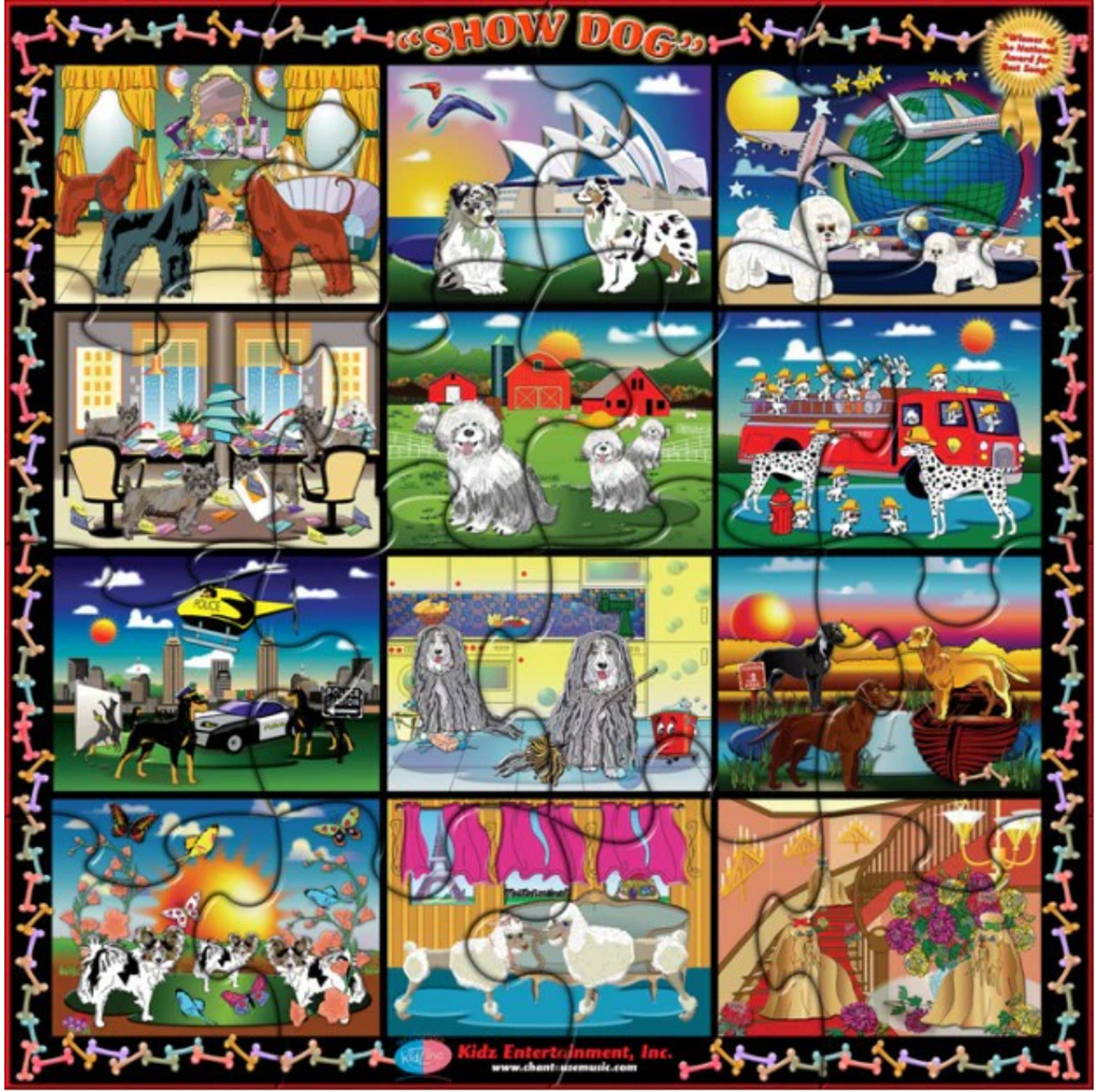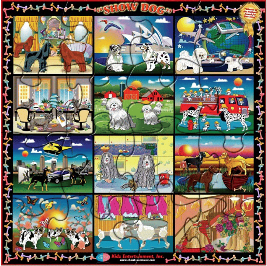 From Australia to the moon, from the city to the farm, from the kitchen to the salon, bring a vivid imagination with you when you build the puzzles and take a trip from place to place. You'll want to take all of the dogs home!!!