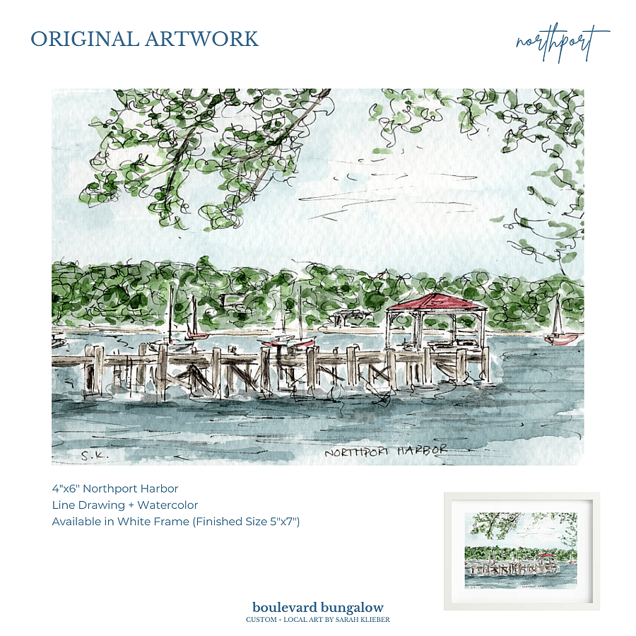 This charming painting beautifully captures the peaceful waters and timeless character of Northport Harbor. With delicate brushwork and warm tones, it reflects the harbor's calm spirit and coastal charm. Perfect in Size for gifting or displaying!