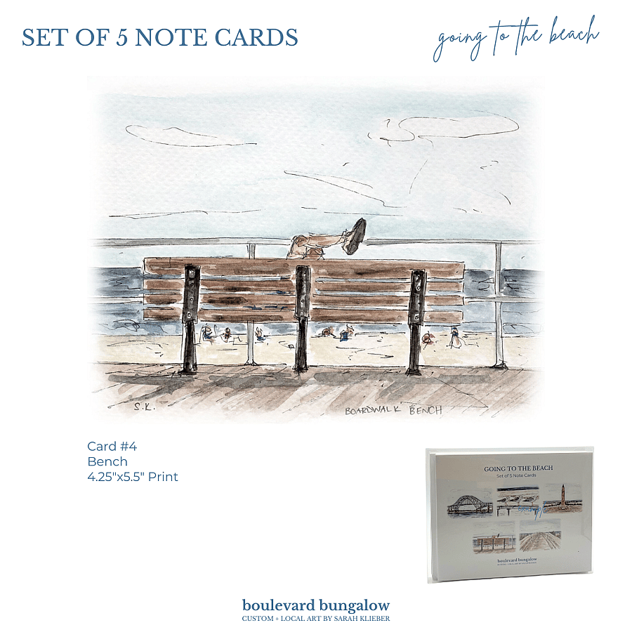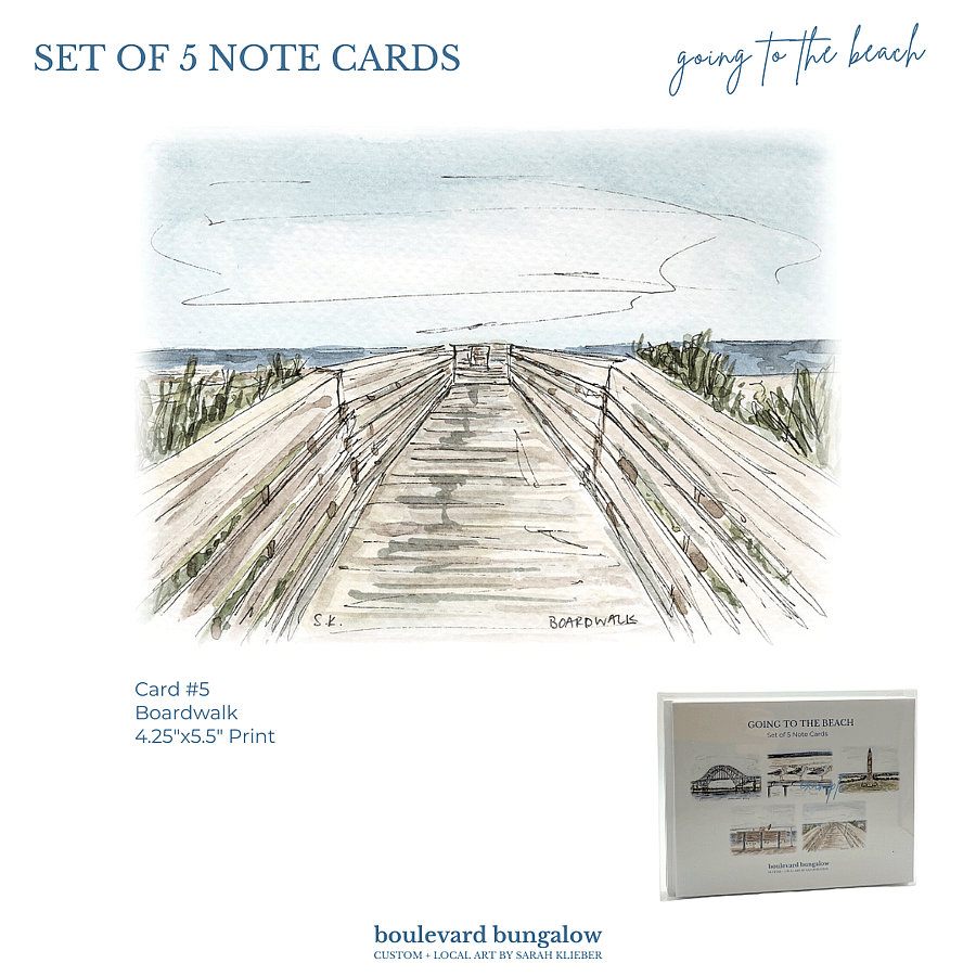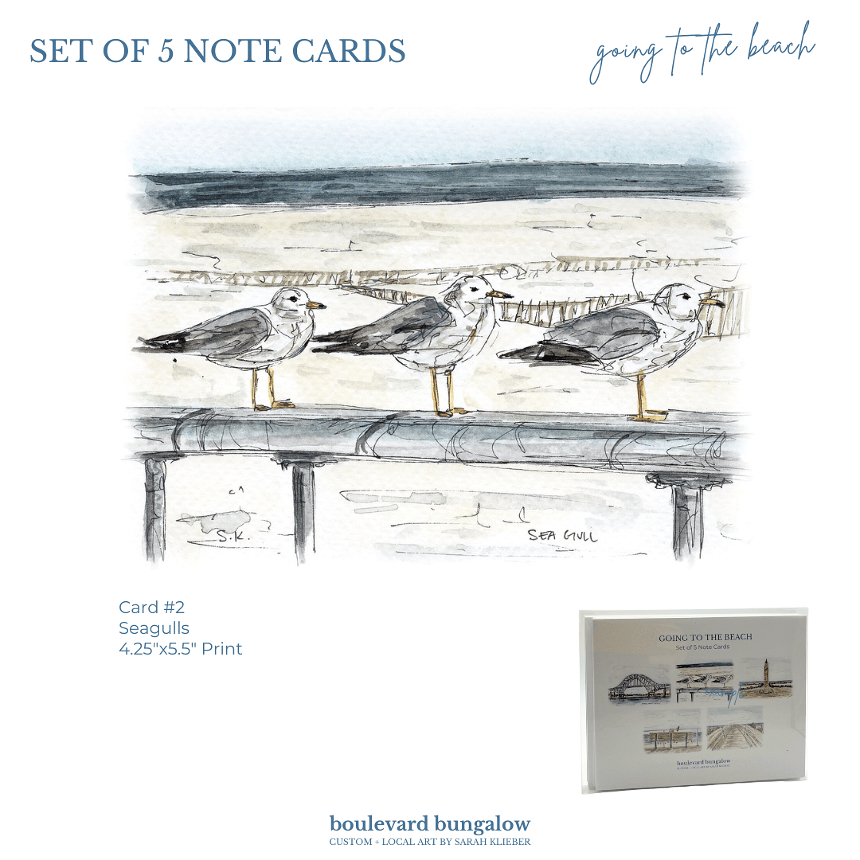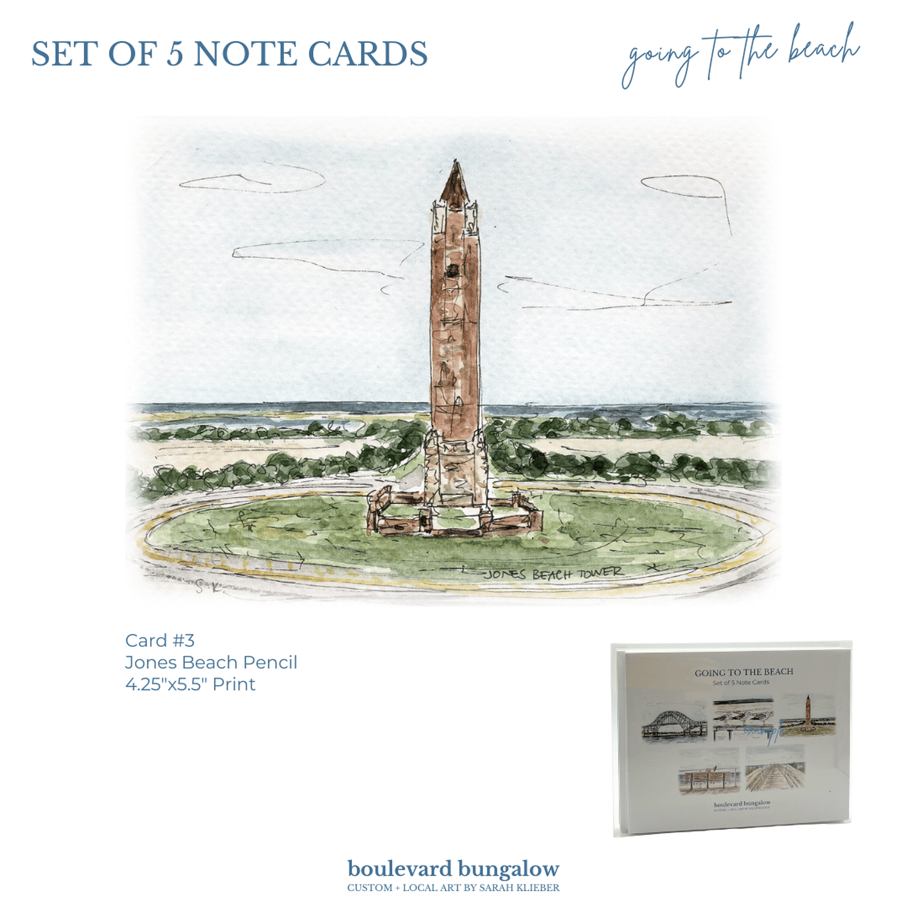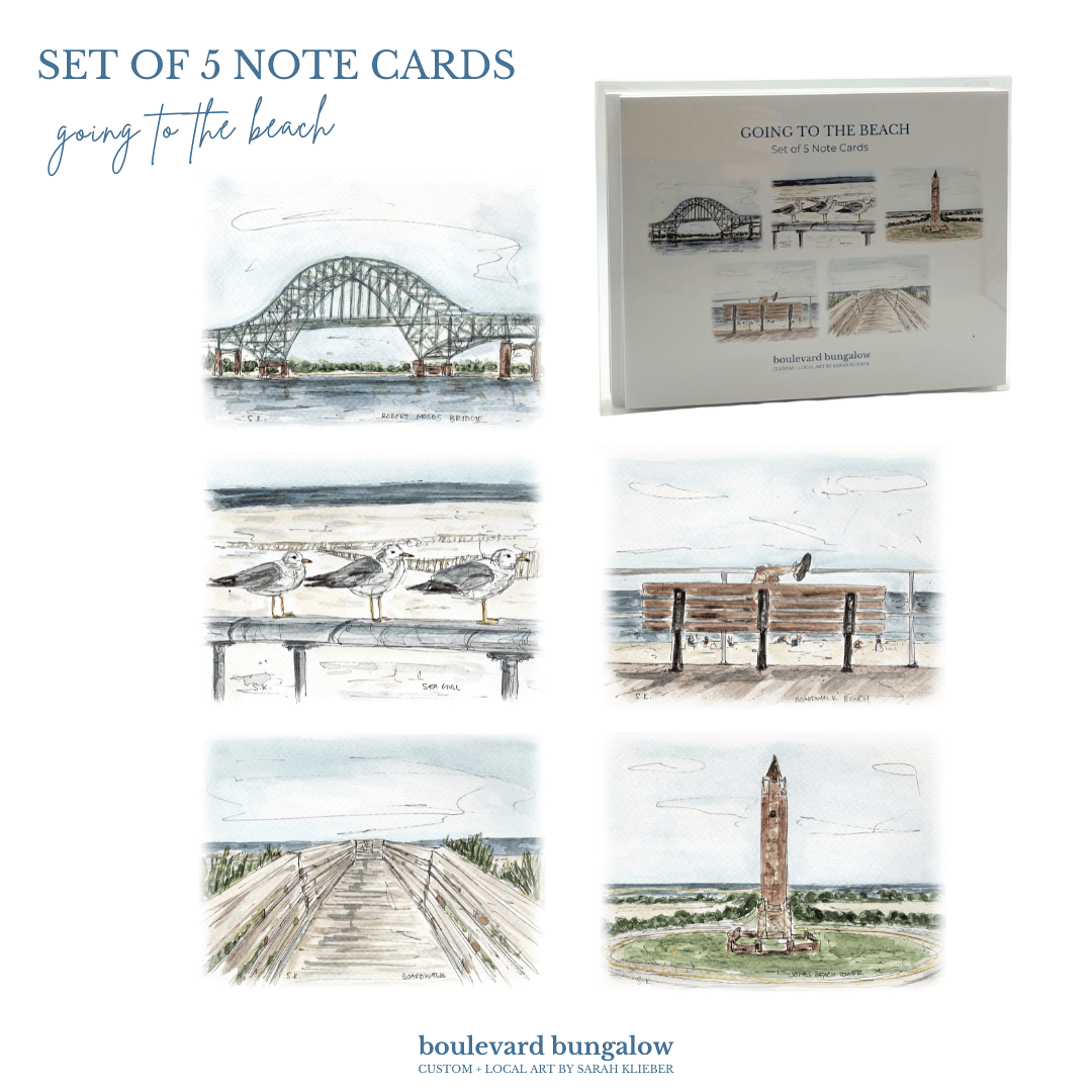 Send sunny vibes with this set of 5 "Going to the Beach" note cards. Each features line drawing and watercolor capturing the fun and charm of a day at the shore. Blank inside for your message, perfect for notes, gifts, or keepsakes.