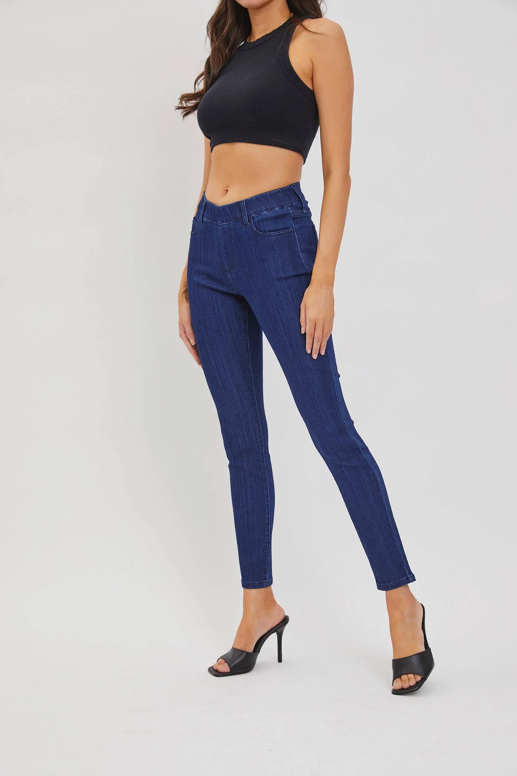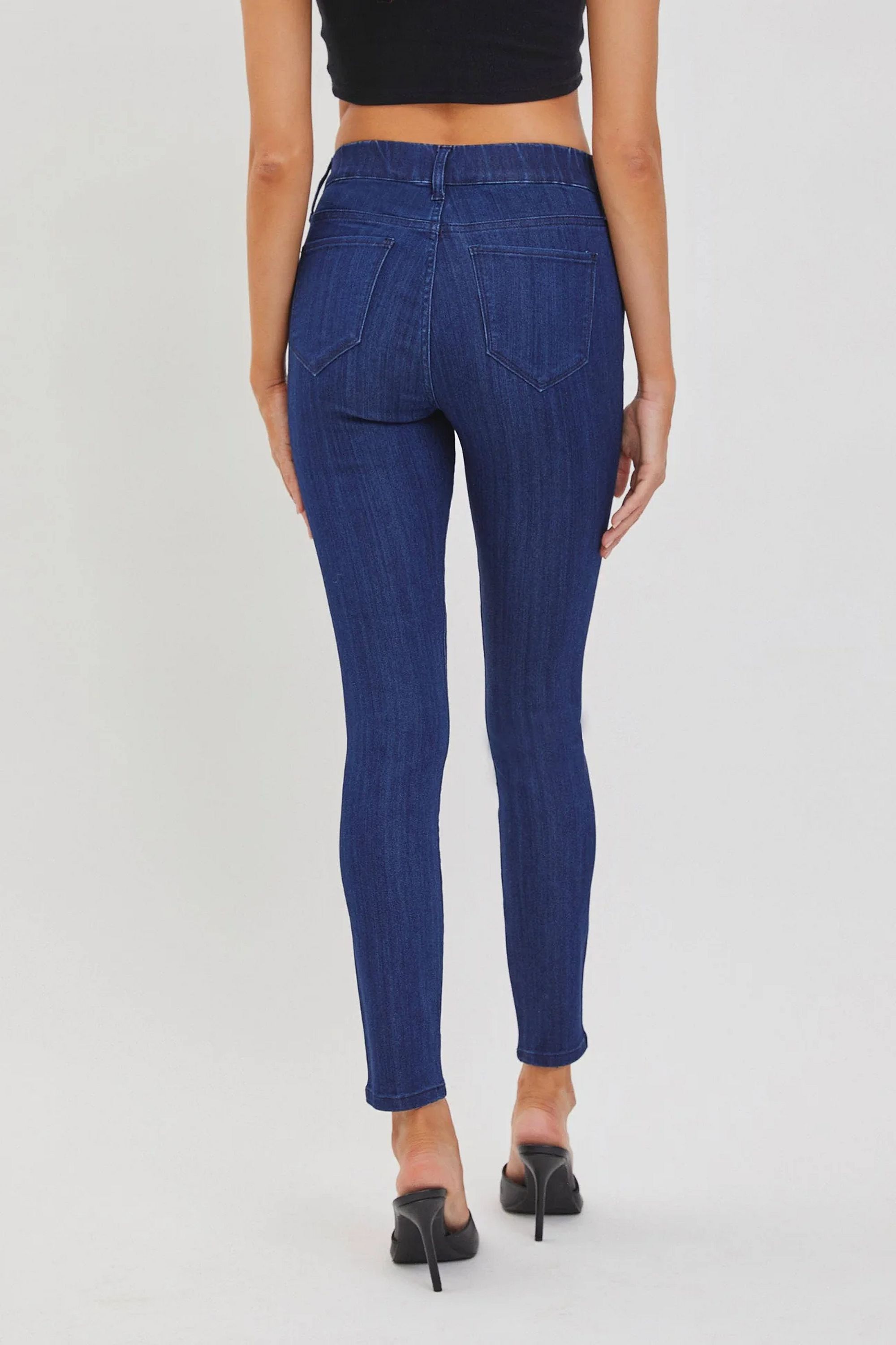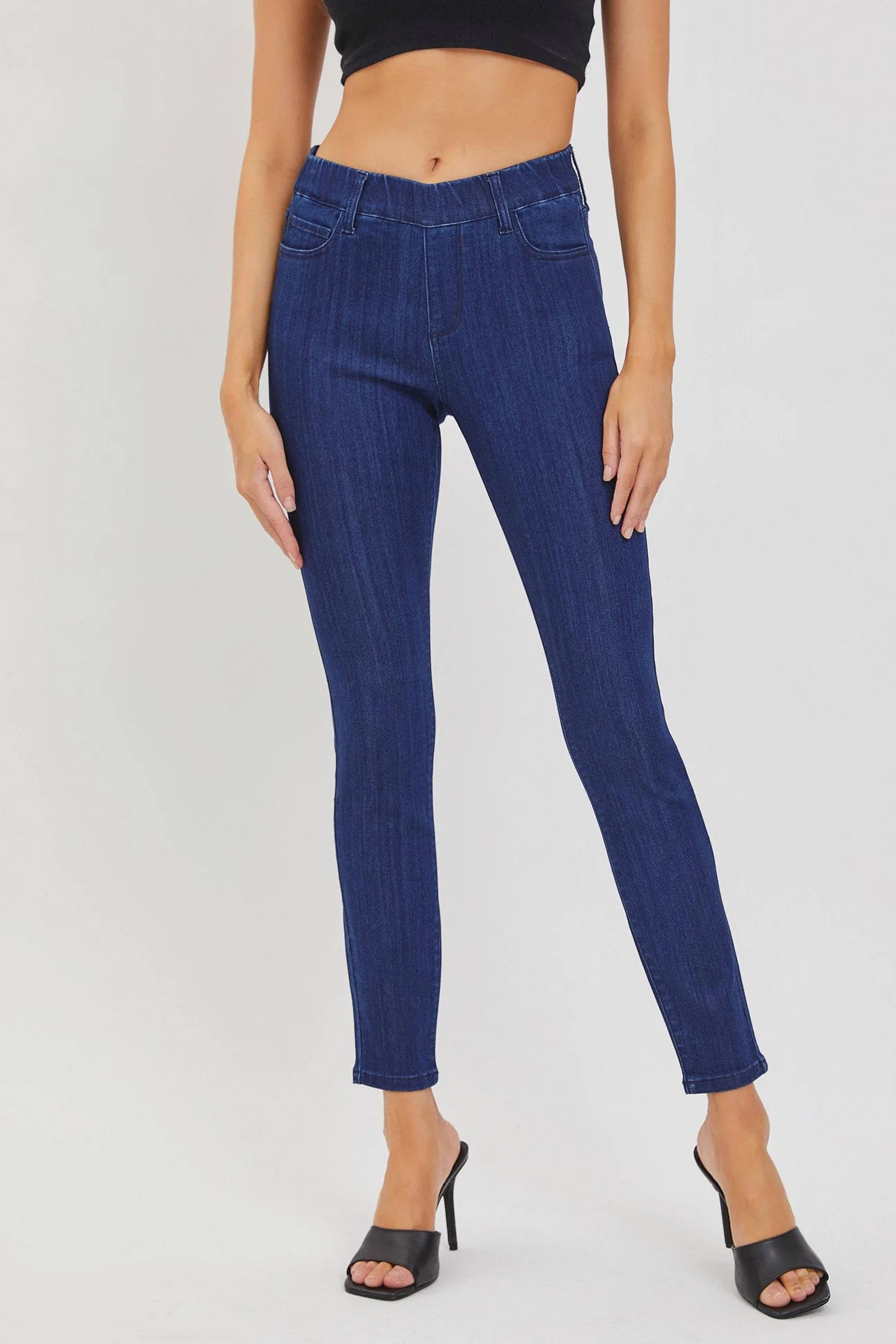 Mid Rise Pull On Cropped Skinny Dark Denim