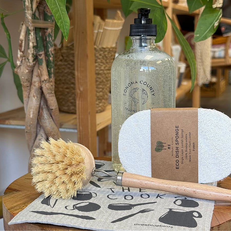 Includes: 16oz Dish Soap - Refillable Mother Earth Eco Dish Sponge Reusable Swedish Dish Towel Beachwood & Sisal Dish Brush