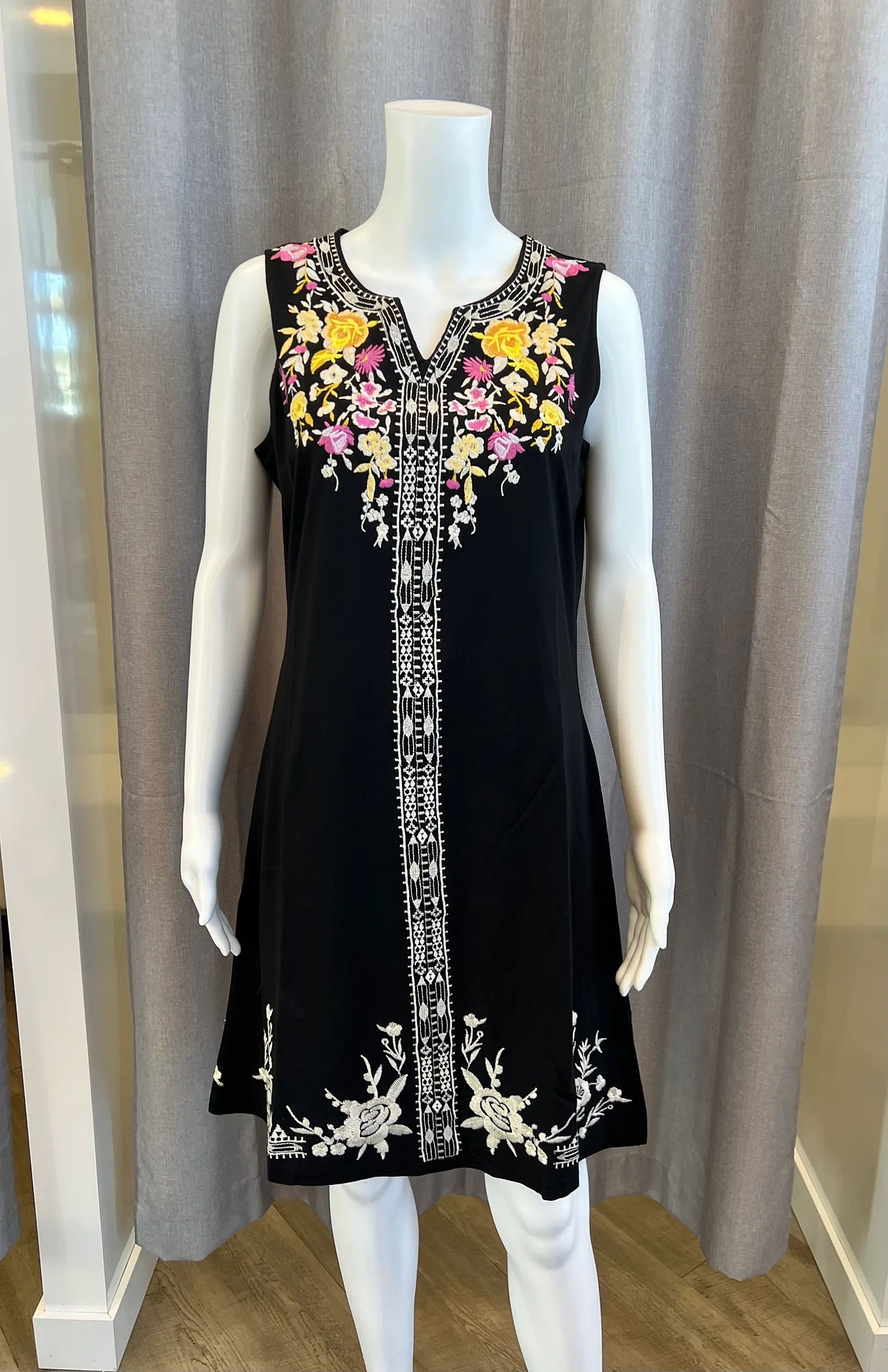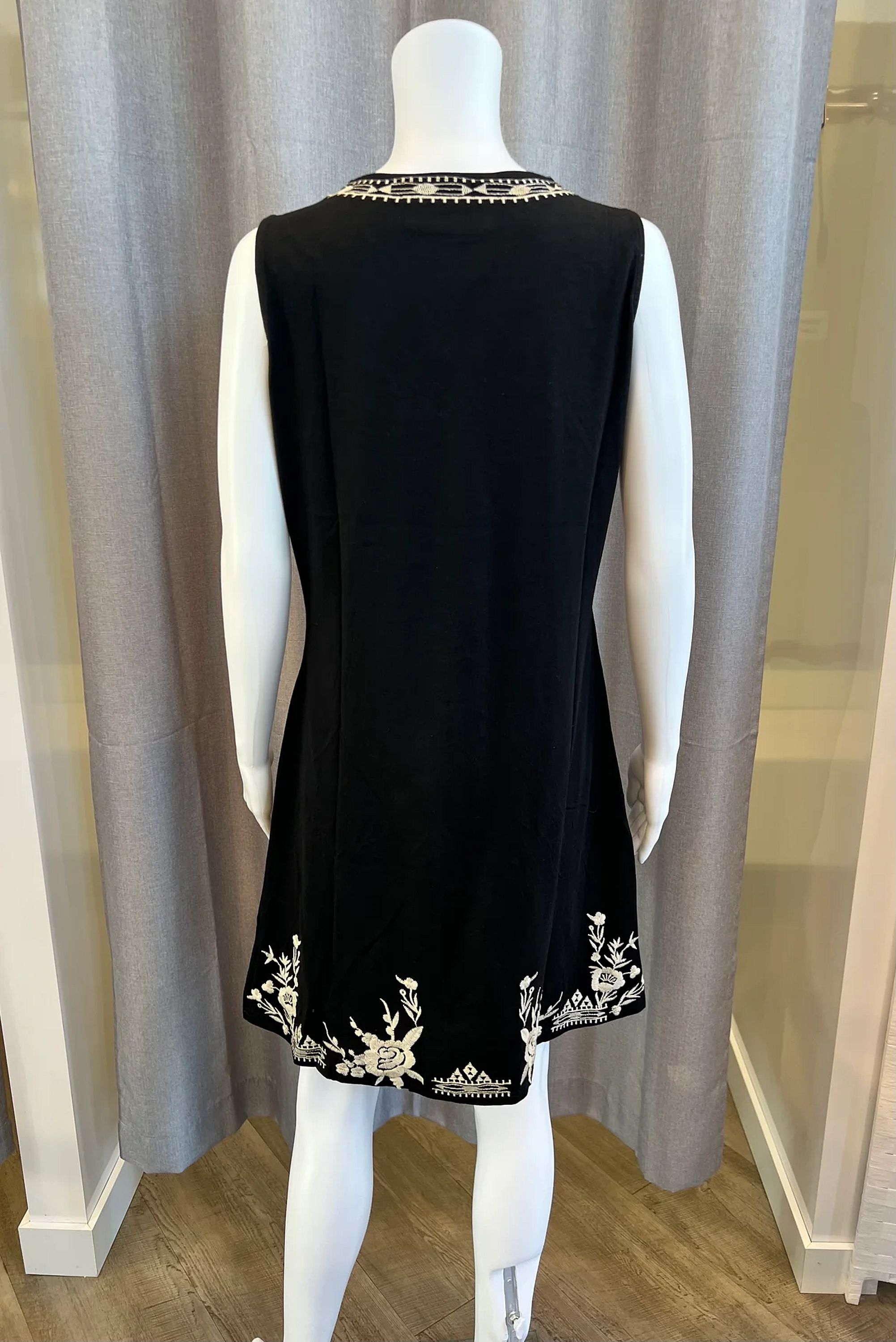 Black Embroidered Dress- 100% Cotton, sleeveless/lightweight, hits below knee