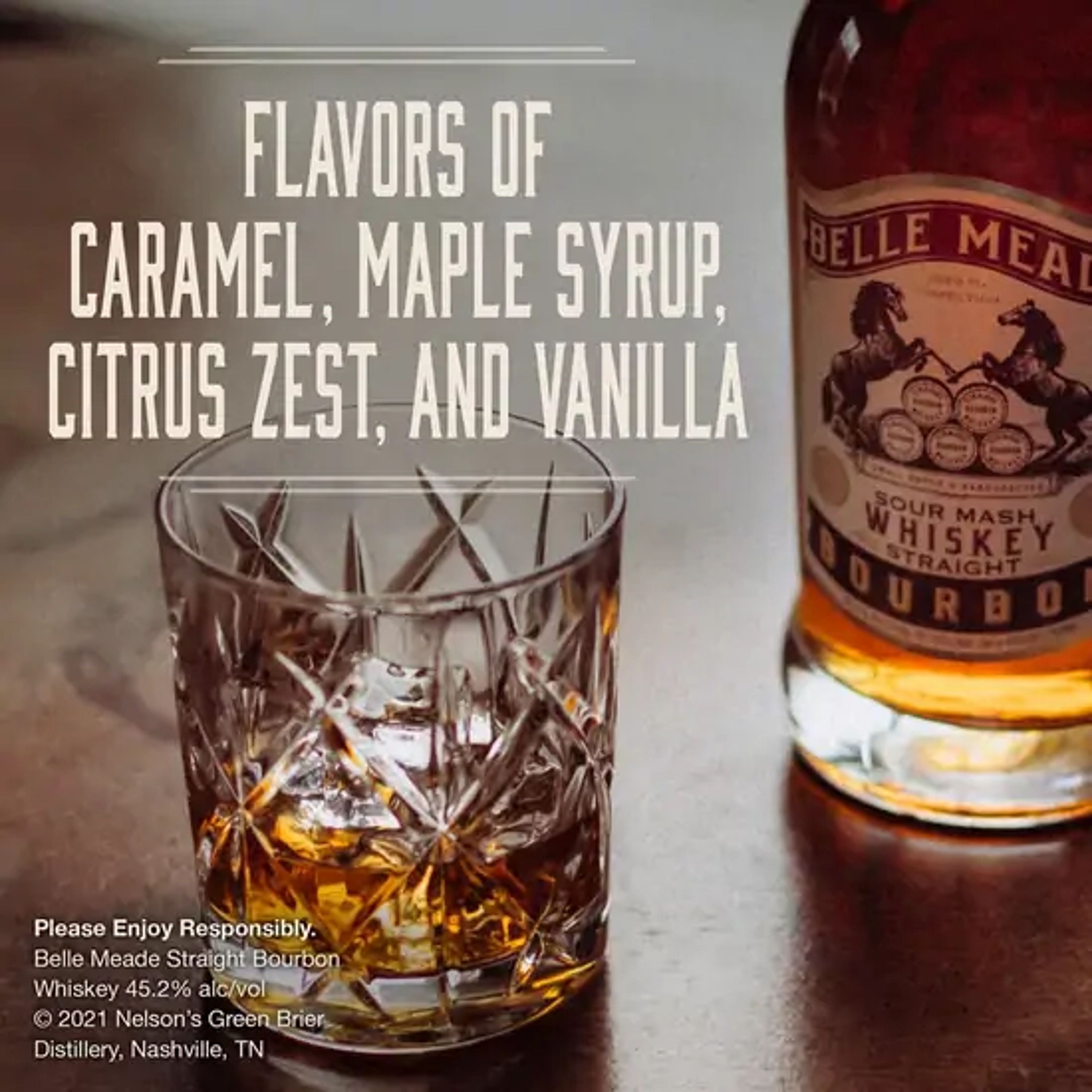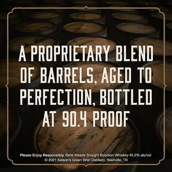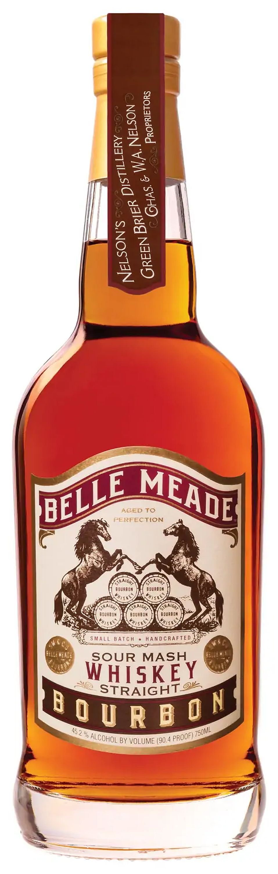 Aged to perfection. Small batch. Handcrafted. Belle Meade Bourbon is a unique family brand originally produced in the American Prohibition era by Charles Nelson's Green Brier Distillery, producer of the finest whiskies of its time. Today, Charles Nelson's descendants, Charles and Wm. A. Nelson, are proud to resurrect the family business with the reintroduction of his venerable old brand. At 90.4 proof, this bourbon, this bourbon reaches a sweet spot that balances the rich, spicy flavors and delivers a depth of character unlike any other you've tasted.