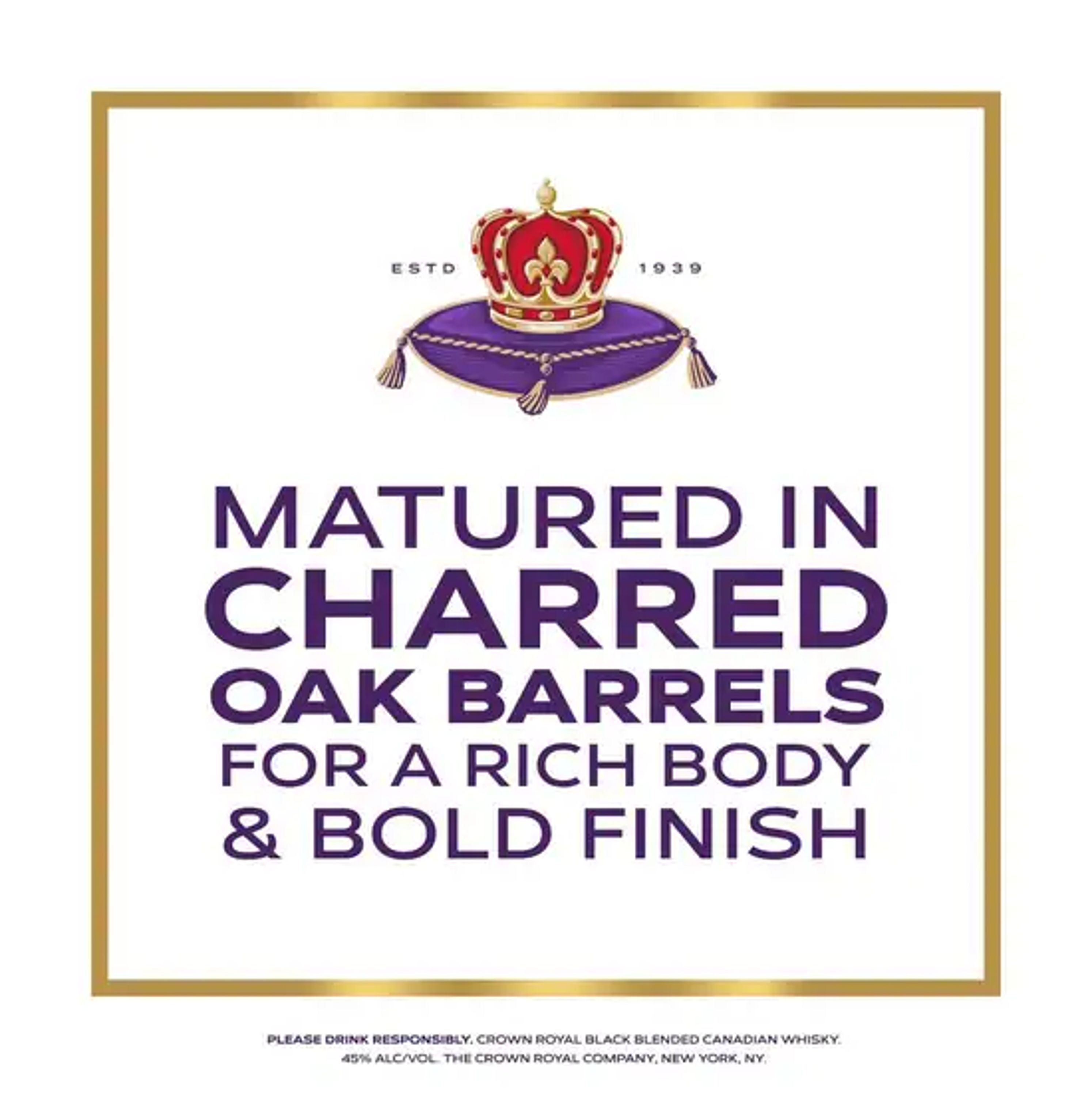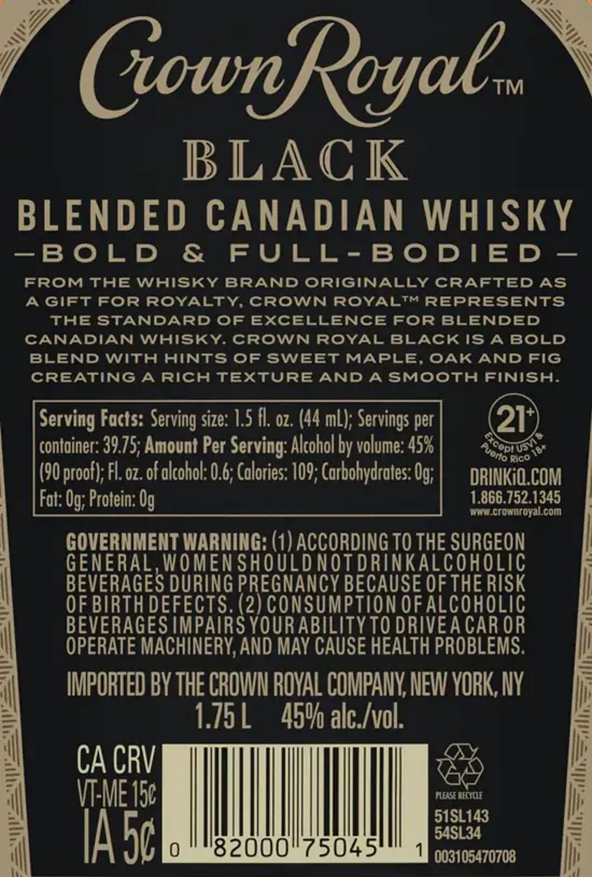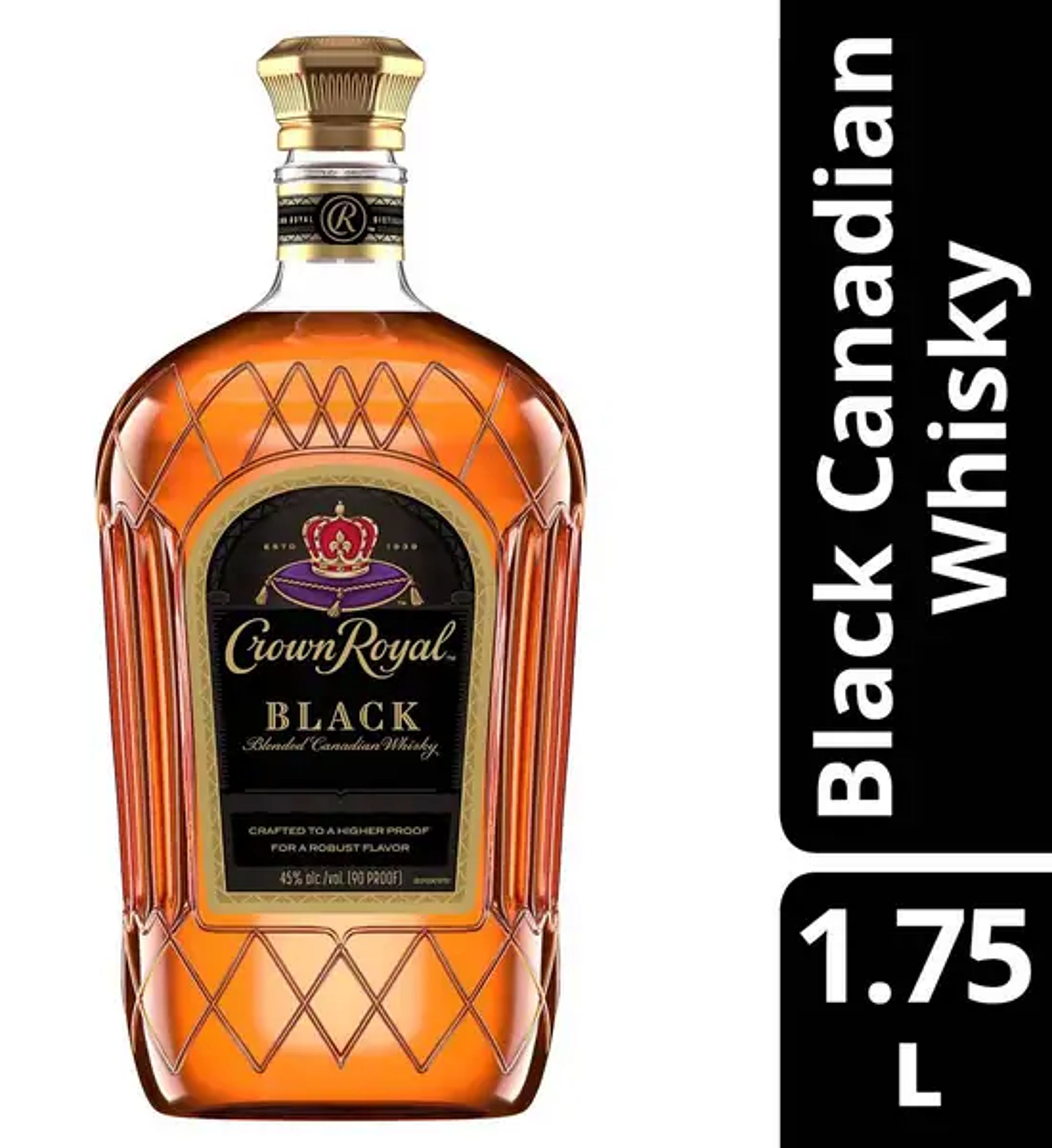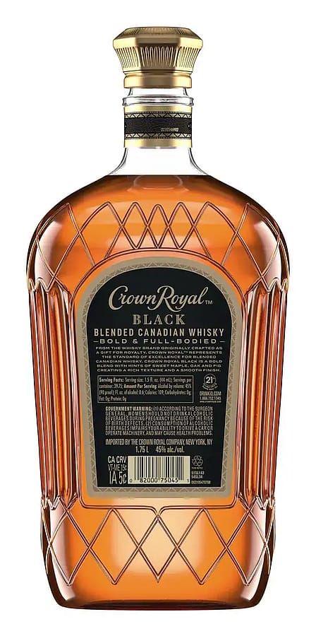 With a creamy texture and notes of dried fruit, our whisky provides a refined flavor that enhances any cocktail party or celebration. With the signature smoothness of traditional, our black whisky is matured in charred oak barrels and blended at a higher proof for a richer body and bold finish. Perfect for a Black Whisky Manhattan. Whisky won a Gold medal at the 2021 San Francisco World Spirits Competition. Includes one 90 proof 1.75 L bottle of Black Blended Canadian Whisky. Please drink responsibly.