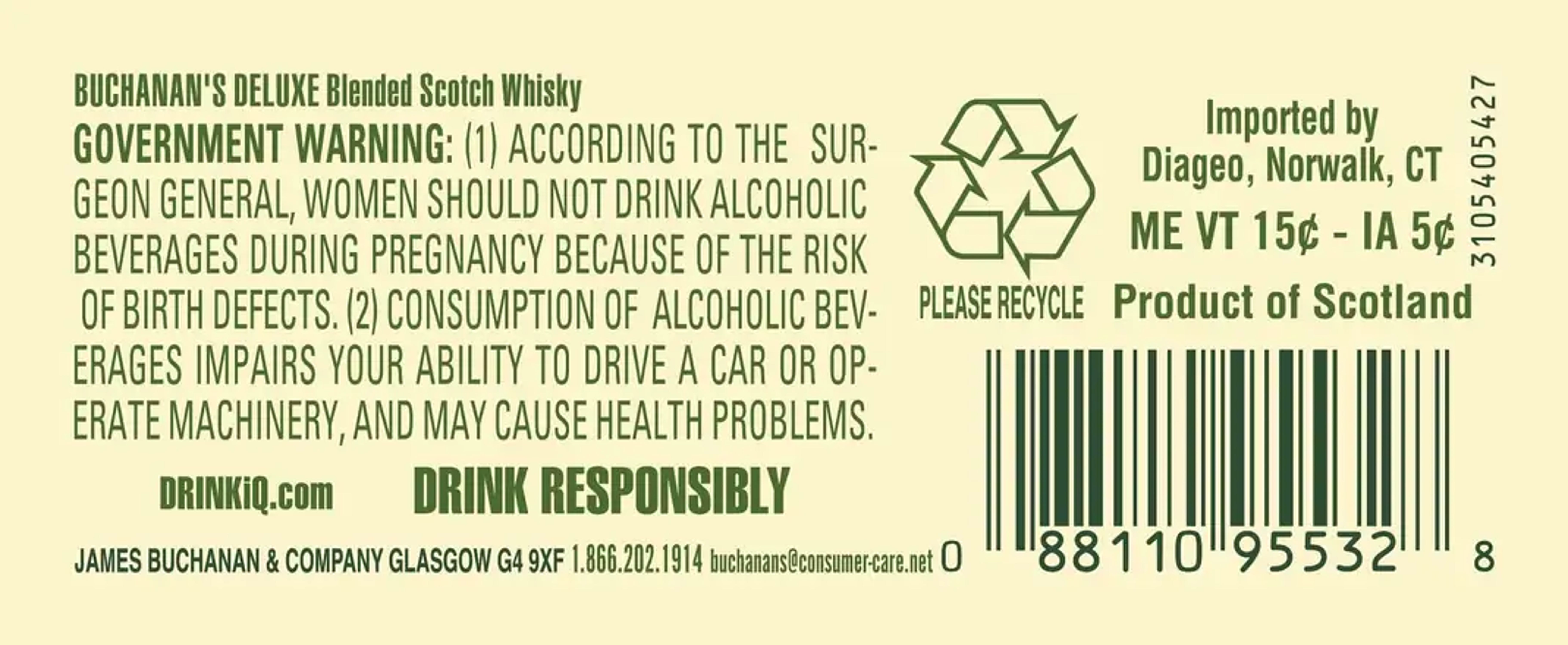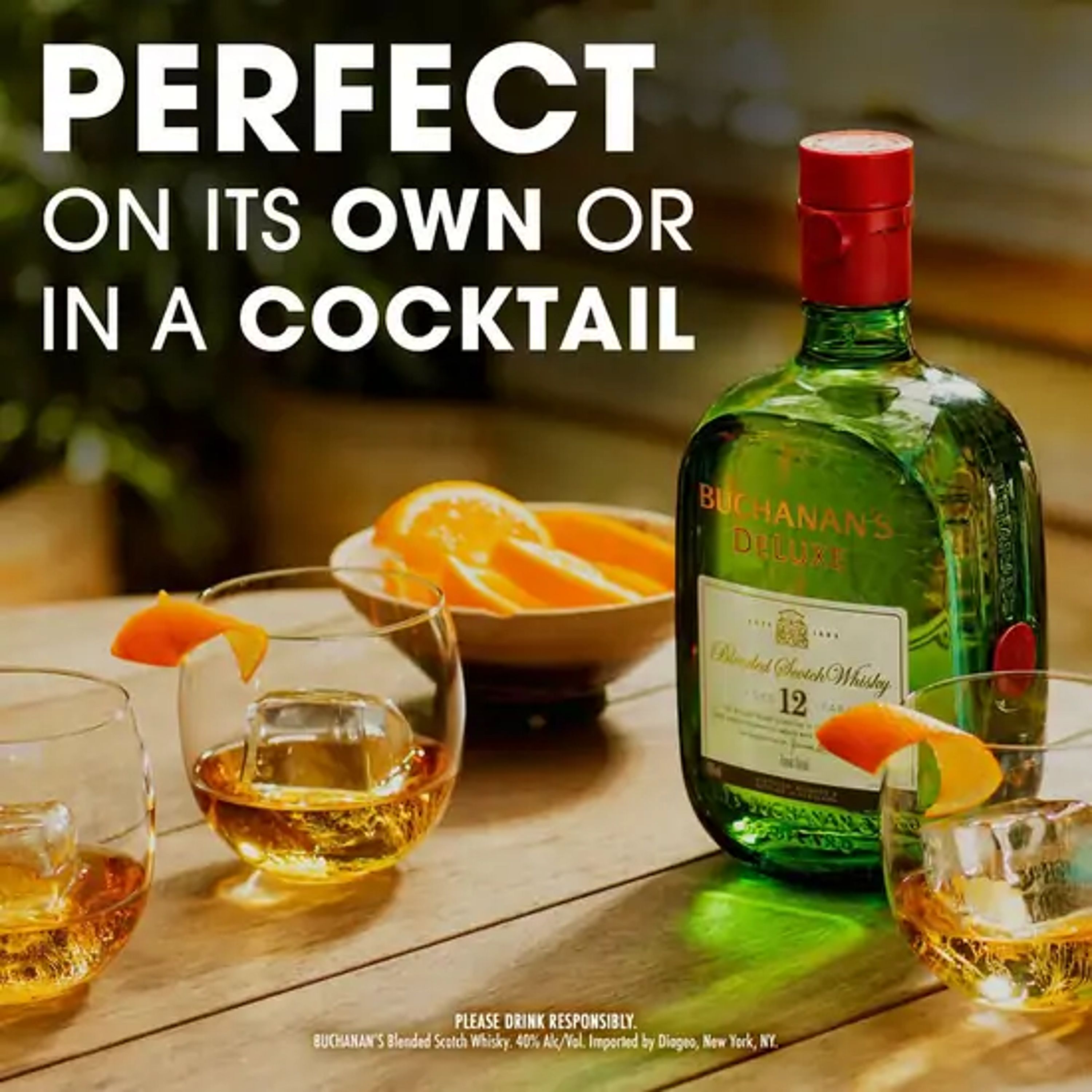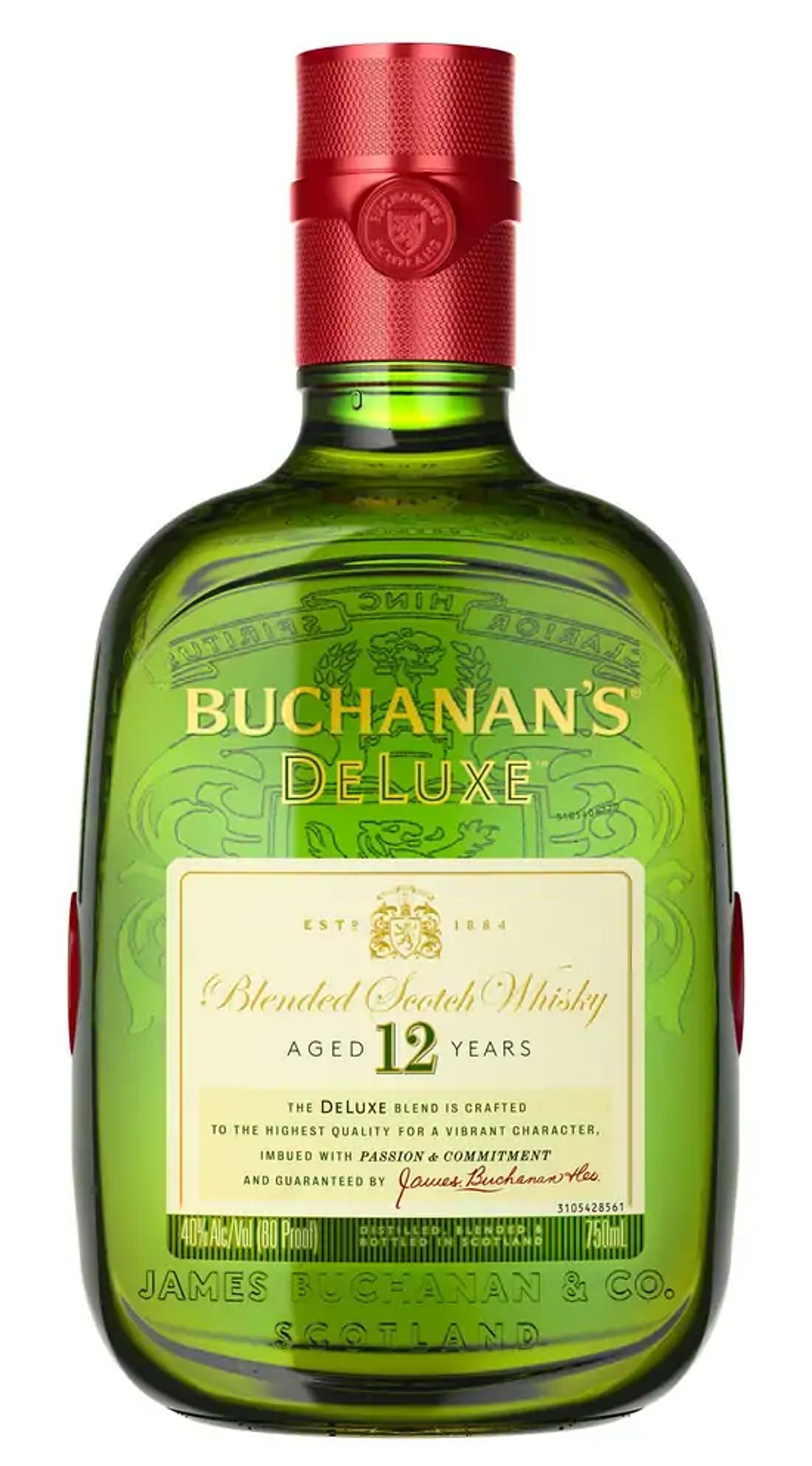 Born from over a century of experience, Buchanan's DeLuxe Aged 12 Years Blended Scotch Whisky is guaranteed to heighten any celebration. With notes of citrus fruits and honey, our 80 proof whisky features a sweet, smooth flavor with orange and chocolate notes. Matured for 12 years, our DeLuxe blend offers a lighter profile compared to denser whiskies. Our luxury whisky is crafted to the highest quality for a vibrant character. Buchanan's is proud to shine a light on the spirit of the 200%: those who proudly embrace both their 100% Hispanic heritage and 100% American culture all at once. Best enjoyed in a buchanita. Includes one 80 proof 750 mL bottle of DeLuxe Aged 12 Years Blended Scotch Whisky. Please drink responsibly.