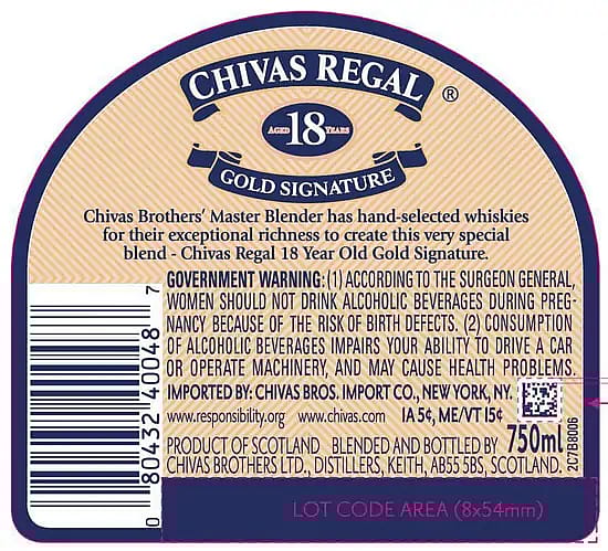 This premium Gold Standard scotch whisky, aged for 18 years, is velvety with dark chocolate cues and multi-layered aromas of dried fruit and buttery toffee. The carefully selected components and added length of maturation period gives this scotch whisky an additional depth and complexity in flavors.