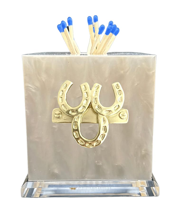 Add a touch of charm to your decor with our exquisite fine acrylic match striker. This stunning lucite-based acrylic match striker is not just sparkly but also durable and weighty, making it a must-have addition to your fine tabletop and tabletop decor. Our hand sculpted gold icon perfectly complements your fine tabletop decor.