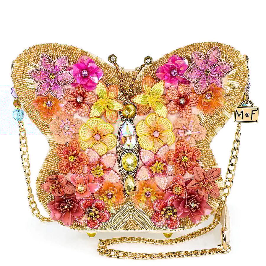 Take Flight Handbag captures the beauty of a butterfly & an elegant garden in full bloom with its dazzling array of colorful flowers and shimmering accents. Its bold design and sparkling details make it a standout purse that’s perfect for turning heads.