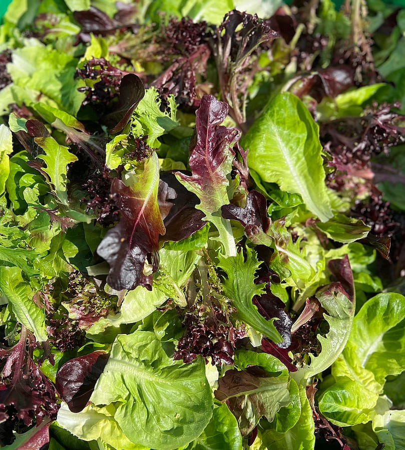 Clamshell of green and red mix lettuce