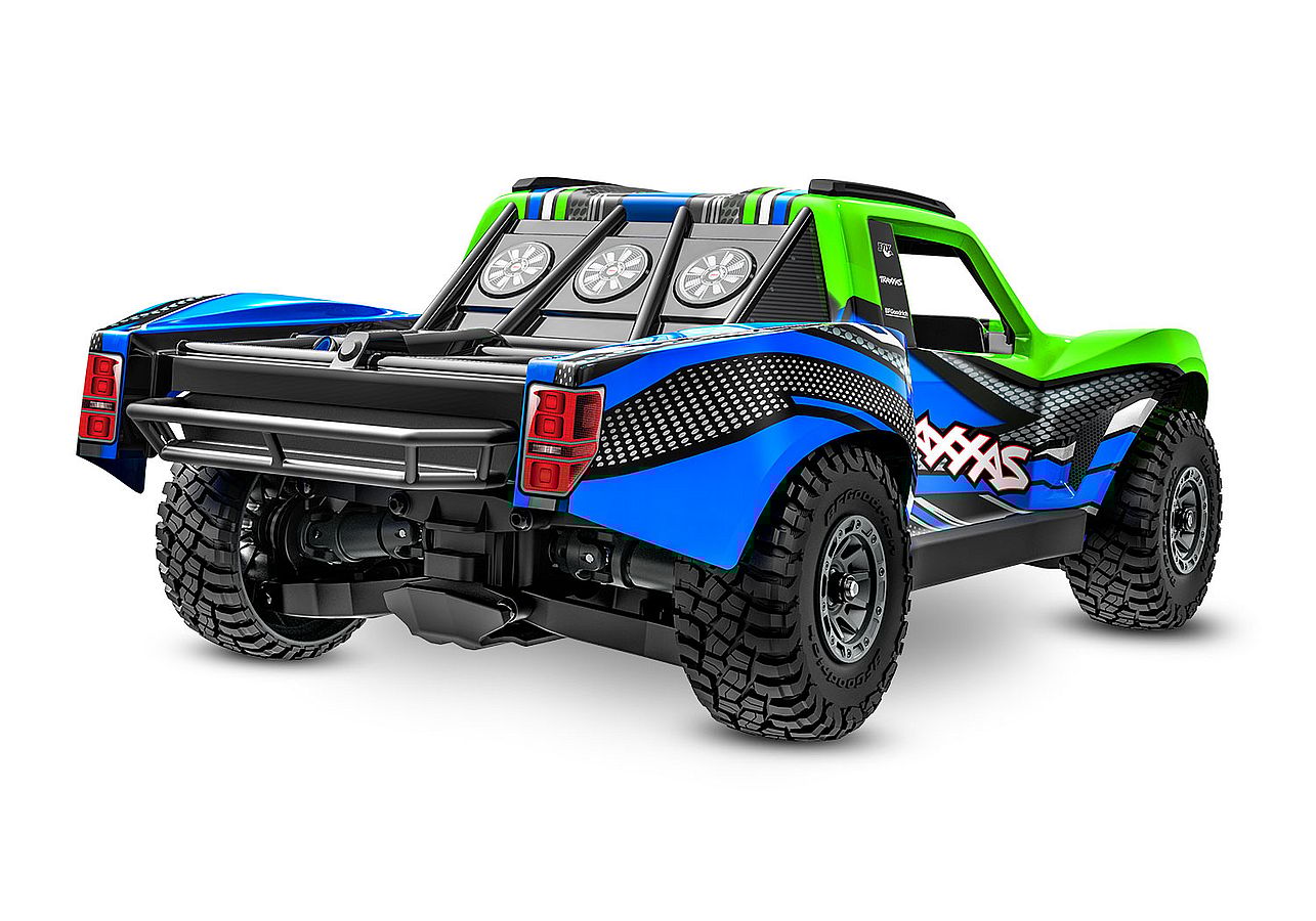 The Mini Slash features a 235mm extended wheelbase for improved stability and true-to-scale handling. Its ultra-rigid modular chassis is designed to absorb impacts while protecting vital components. On top, the clipless short course body snaps securely into place and removes in seconds for fast battery access. With realistic details like a driver figure, interior, and replica netting, the body combines durability with authentic short course style.