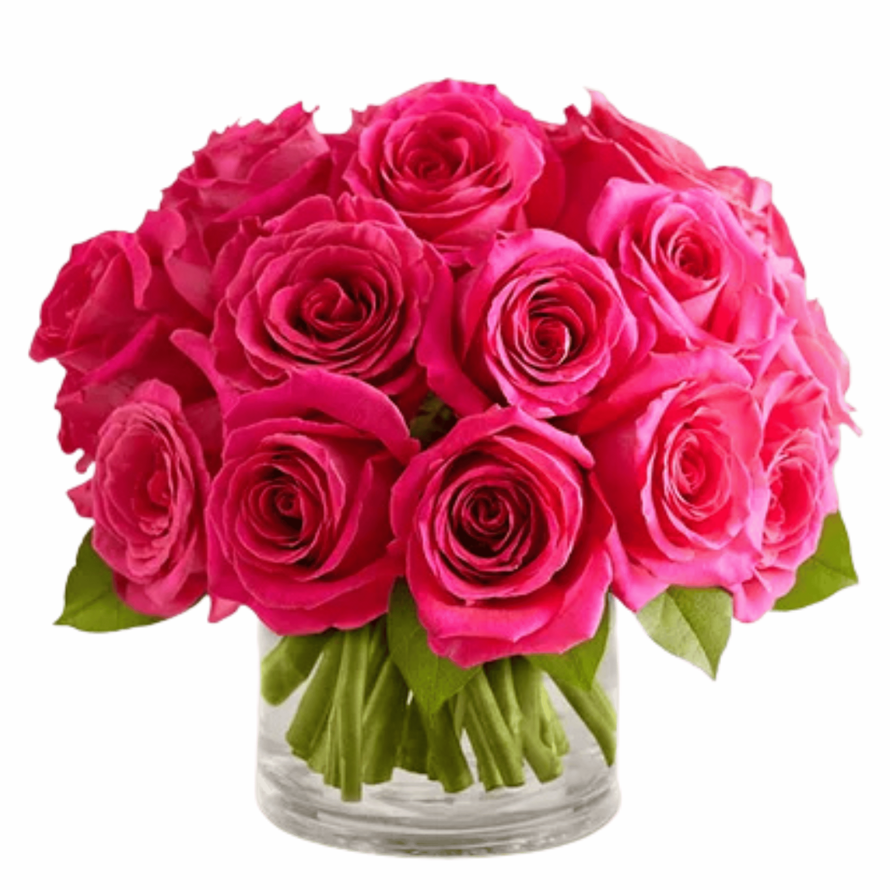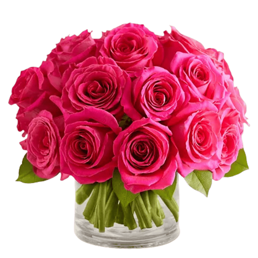24 Compact Roses- designed in a low cylinder vase with the simplicity of red roses. Your choice of Red or Pink #vday26
