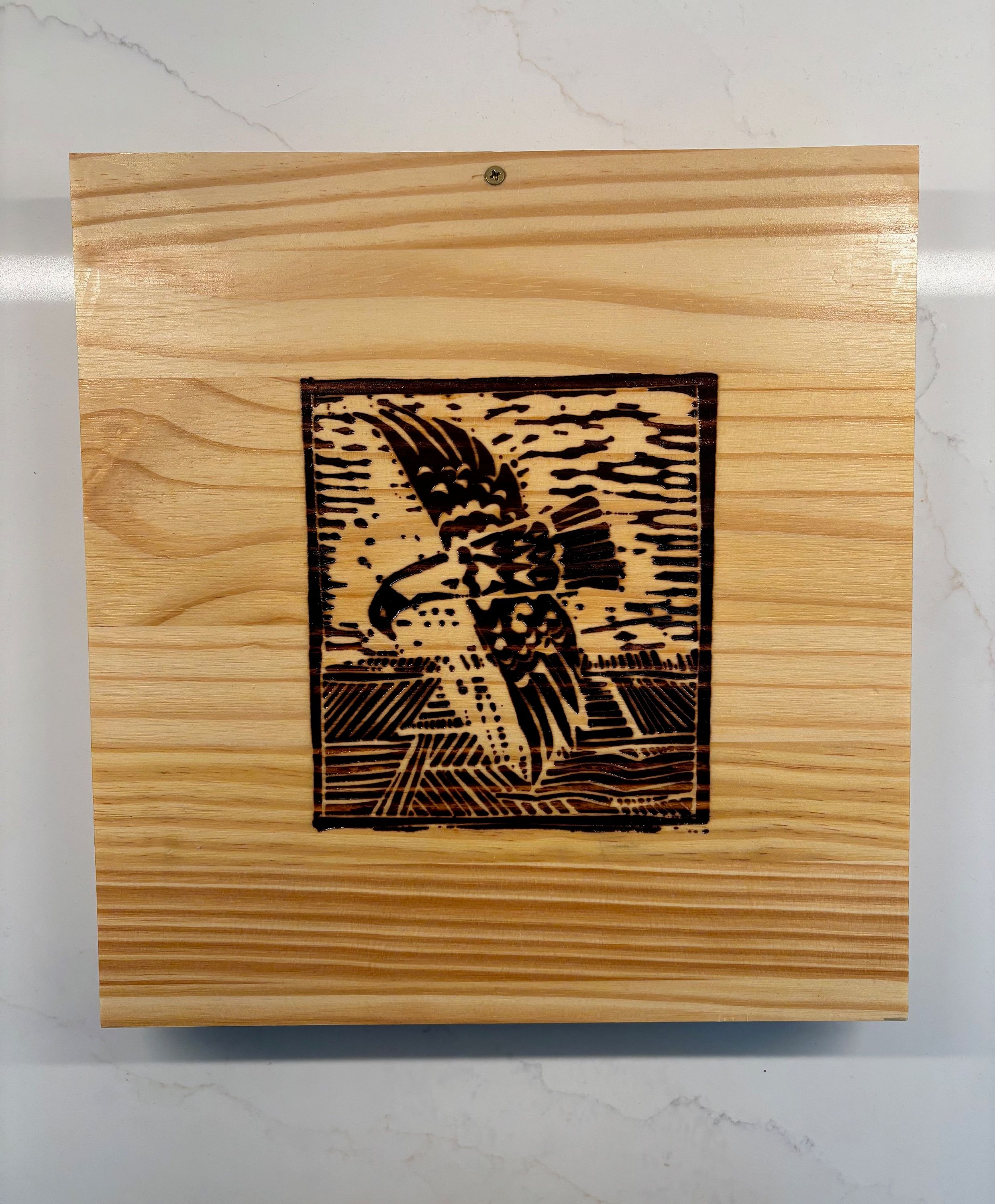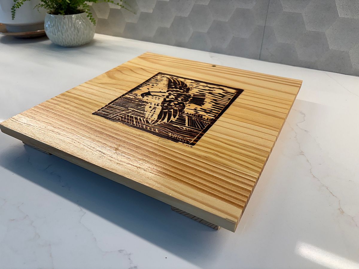This charcuterie board is made from a wooden wine box from cult producer Screaming Eagle and measures 12w x 12.25d x 1.25h. Screaming Eagle is the most sought after bottle of any producer in Napa Valley and would make a great gift to any wine lover. Knife work is not recommended due to the soft nature of the wood.