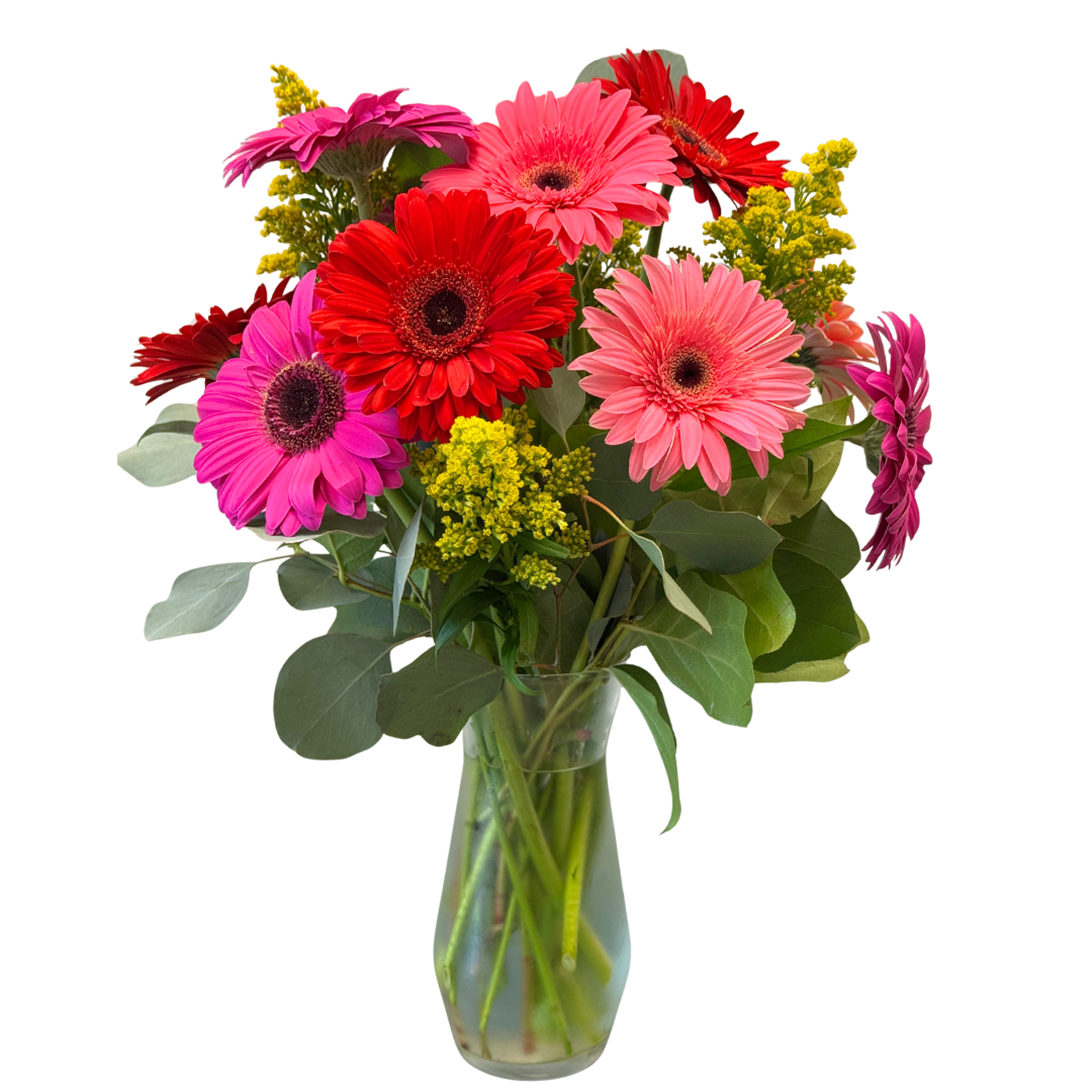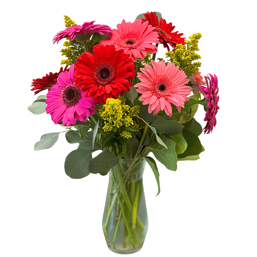 Glorious Gerbera Daisies-Who doesn't love these brightly colored Gerbera Daisies they always bring a smile to anyone's face. They can be designed short or tall all around or one sided. Please note if you have a preference or we can leave it up to the designer. Colors will be a variety.