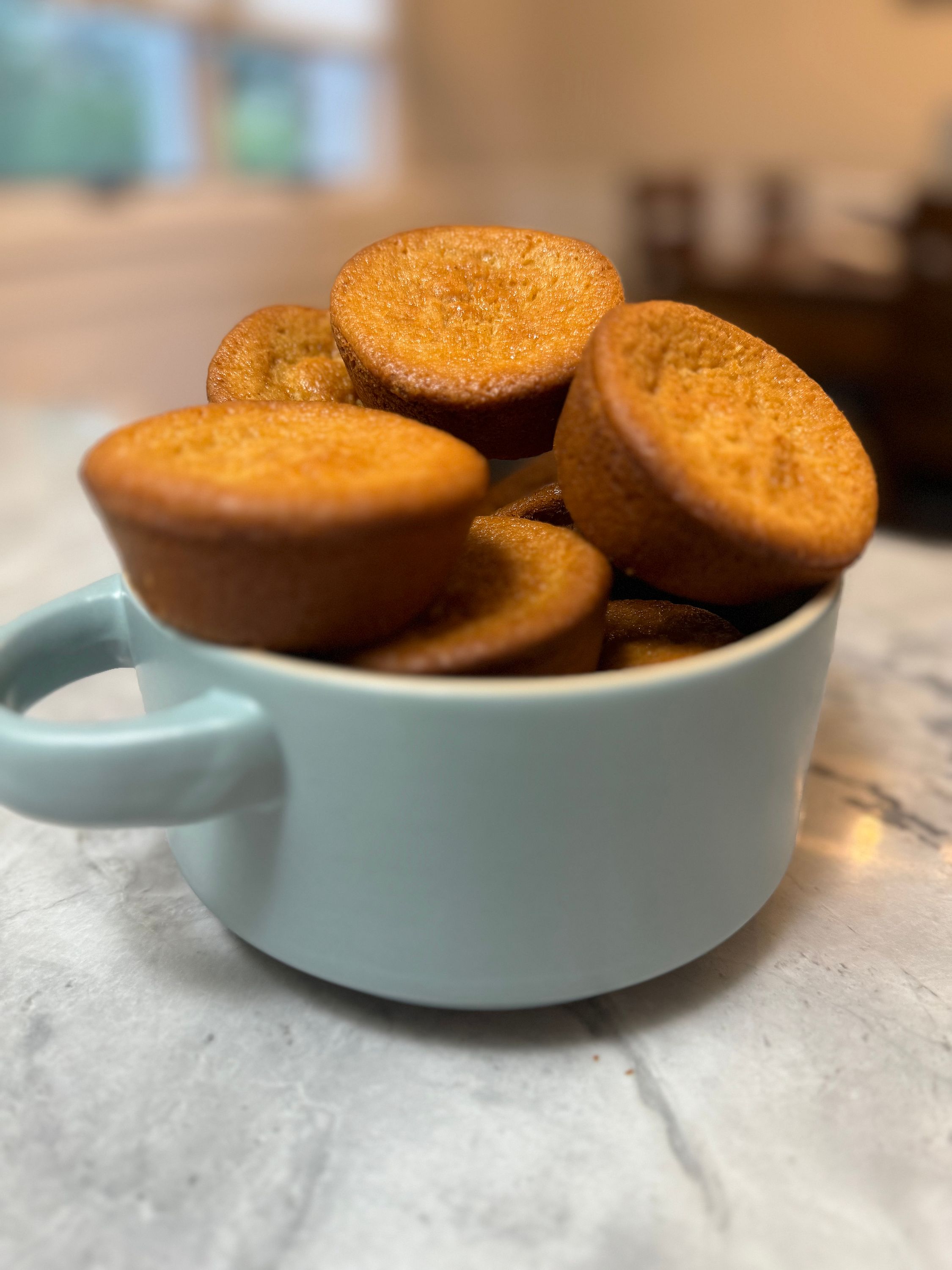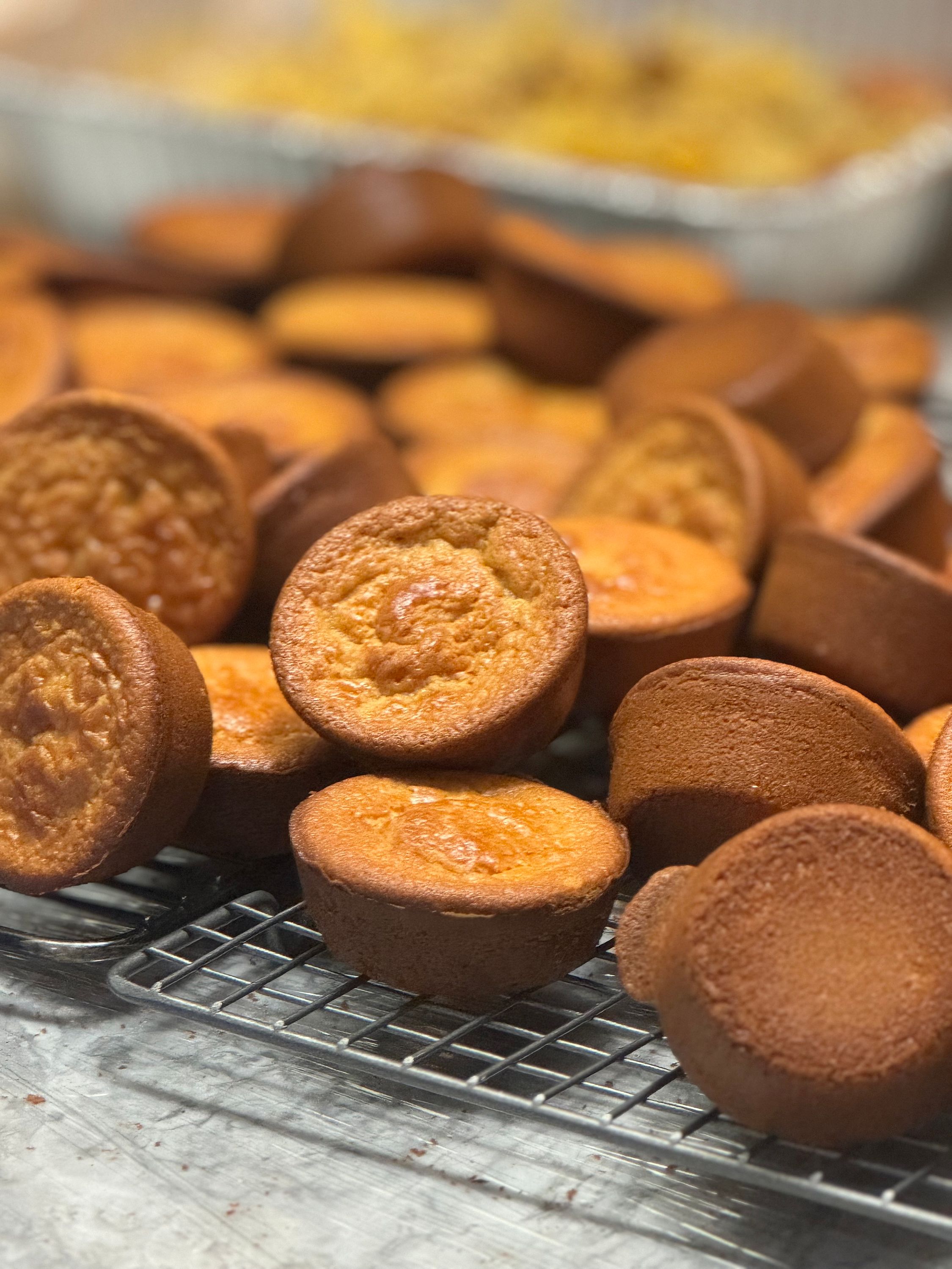 Delicate and chewy mochi cupcake infused with coconut milk and brown butter, offering a sweet and chewy experience. We bake our mochi (rice cakes) so it gives you a nice dense chewy mouthfeel! #vday26