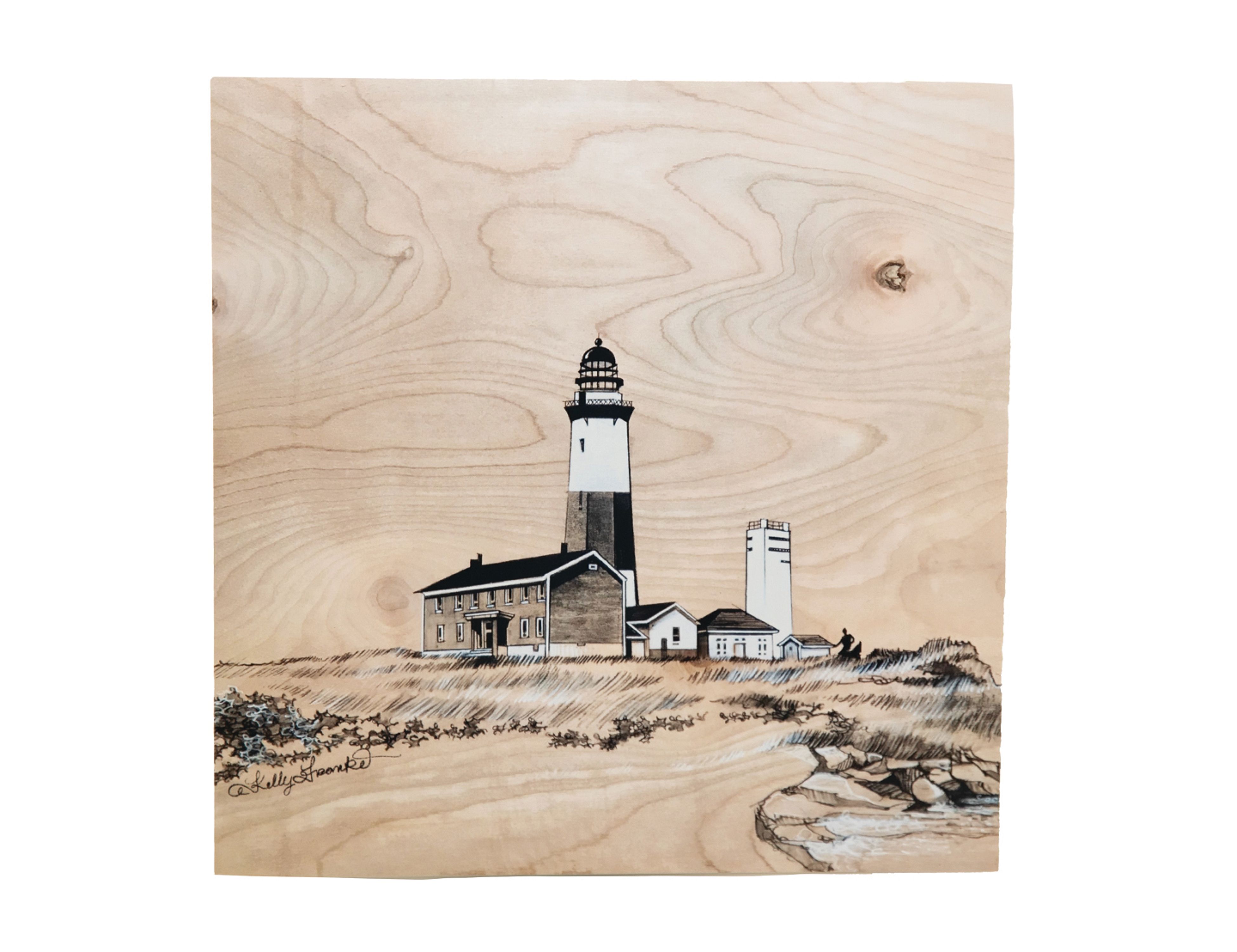 Kelly Franké - Montauk Lighthouse Art Print: This 10x10 print features Long Island's iconic Montauk Lighthouse. North Fork-based artist, Kelly Franké's architecturally intricate landscapes are renowned across Long Island and are frequently seen in Northforker Magazine. Created in Greenport.